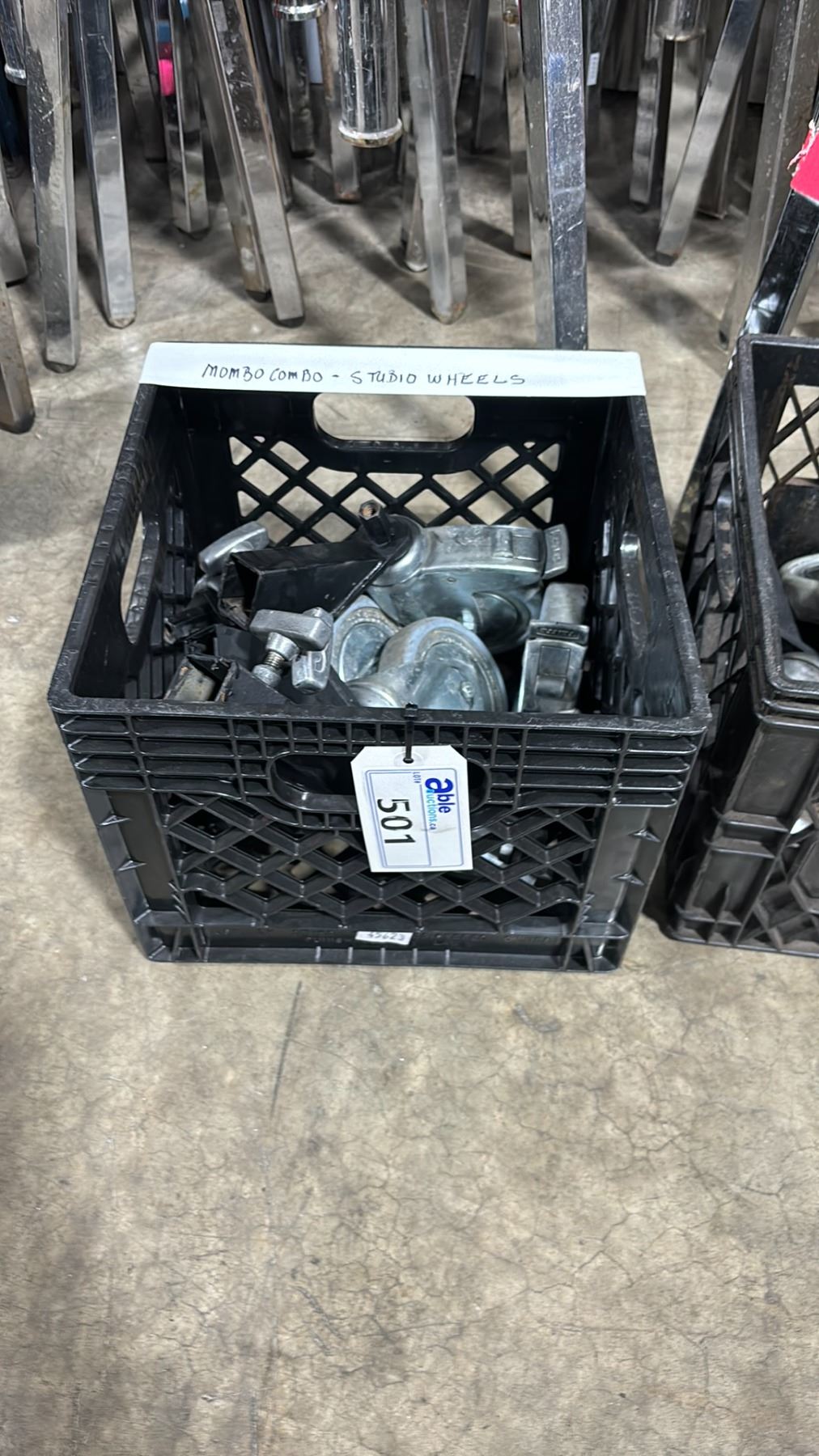 BLACK PLASTIC CRATE OF MOMBO COMBO STUDIO WHEELS *PLASTIC CRATE INCLUDED*