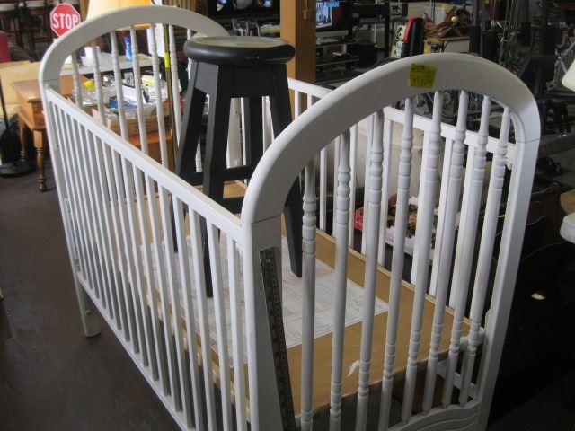 BLACK STOOL, WHITE STORKCRAFT CRIB