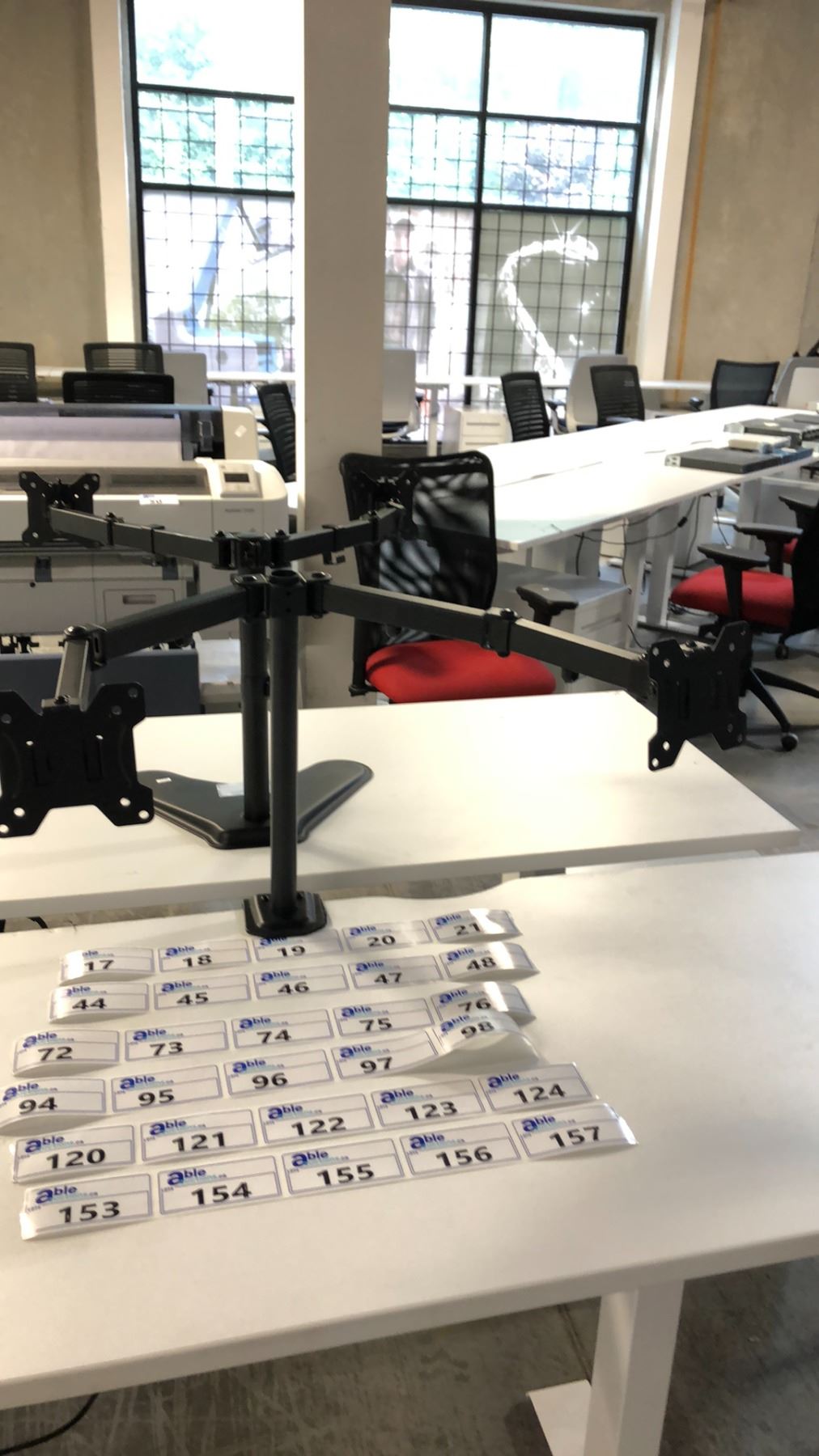 BLACK TABLE MOUNTED DUAL MONITOR STAND