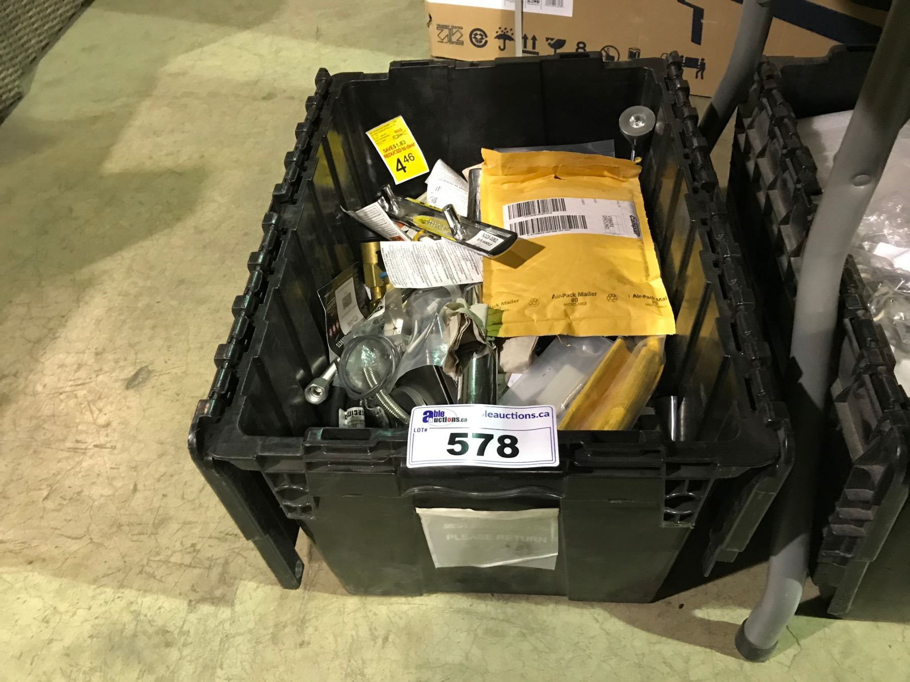 BLACK TOTE OF ASSORTED BARBEQUE PARTS & PRODUCTS ( BIN NOT INCLUDED )