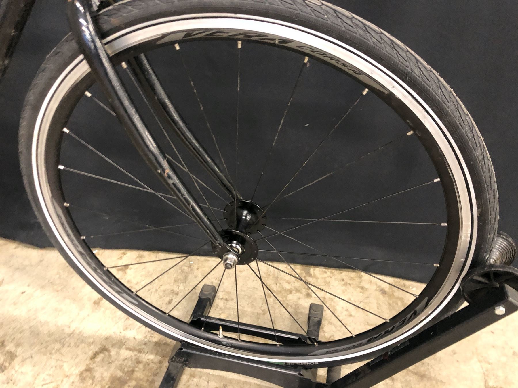 BLACK TRACK SINGLE SPEED ROAD BIKE, SPROCKETS MISALIGNED, MAINTENANCE AND REPAIRS NEEDED, HEADSET