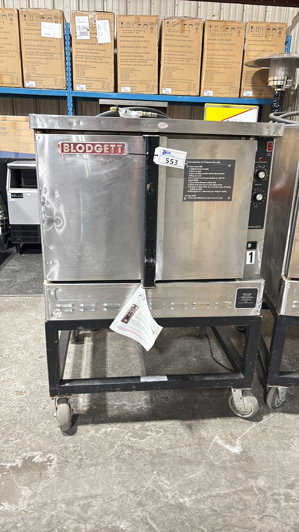 BLODGETT ZEPHAIRE 200-G STAINLESS STEEL COMMERCIAL GAS CONVECTION OVEN ON MOBILE STAND