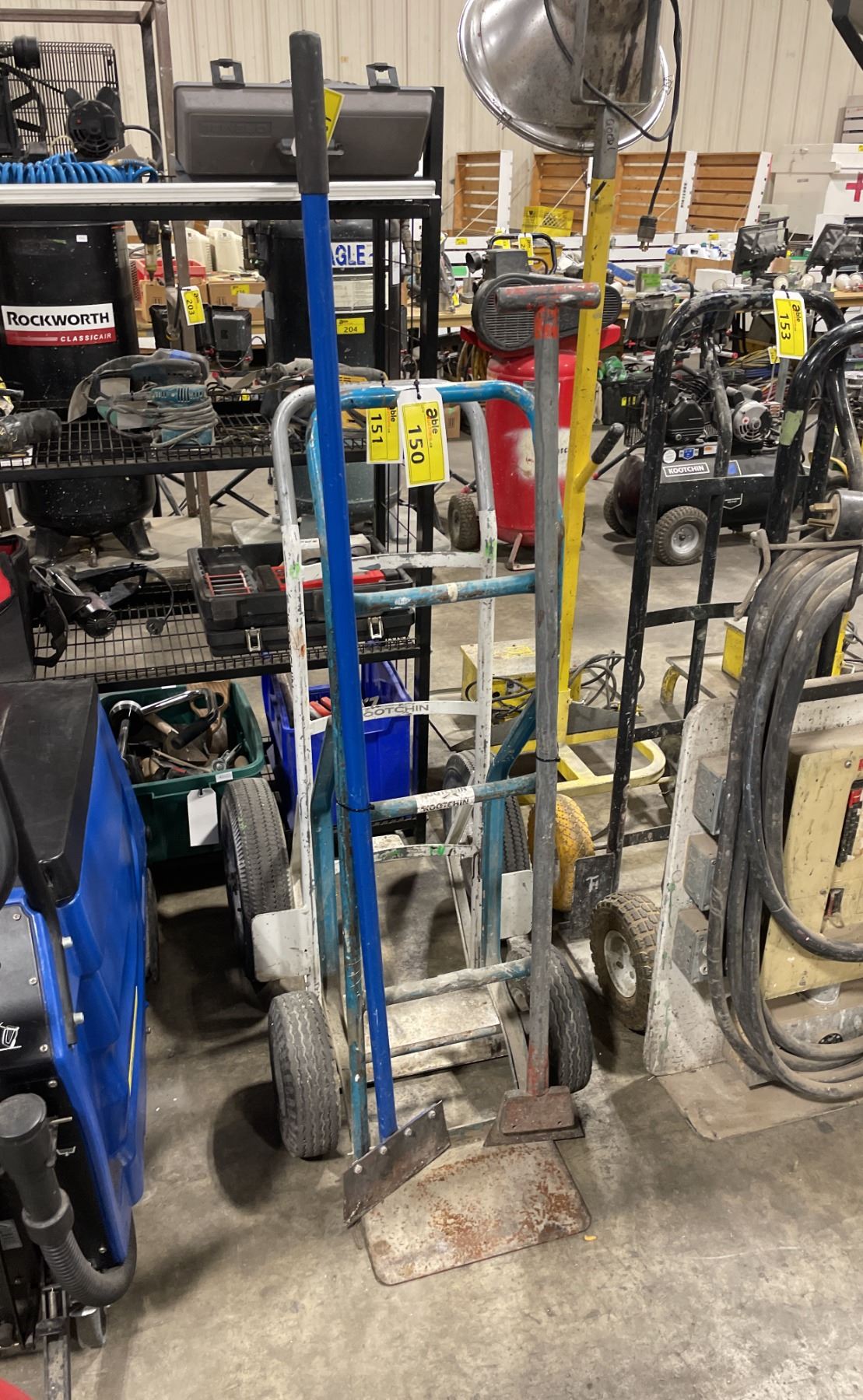 BLUE 2 WHEEL PNEUMATIC HAND TRUCK WITH PAIR OF FLOOR SCRAPERS
