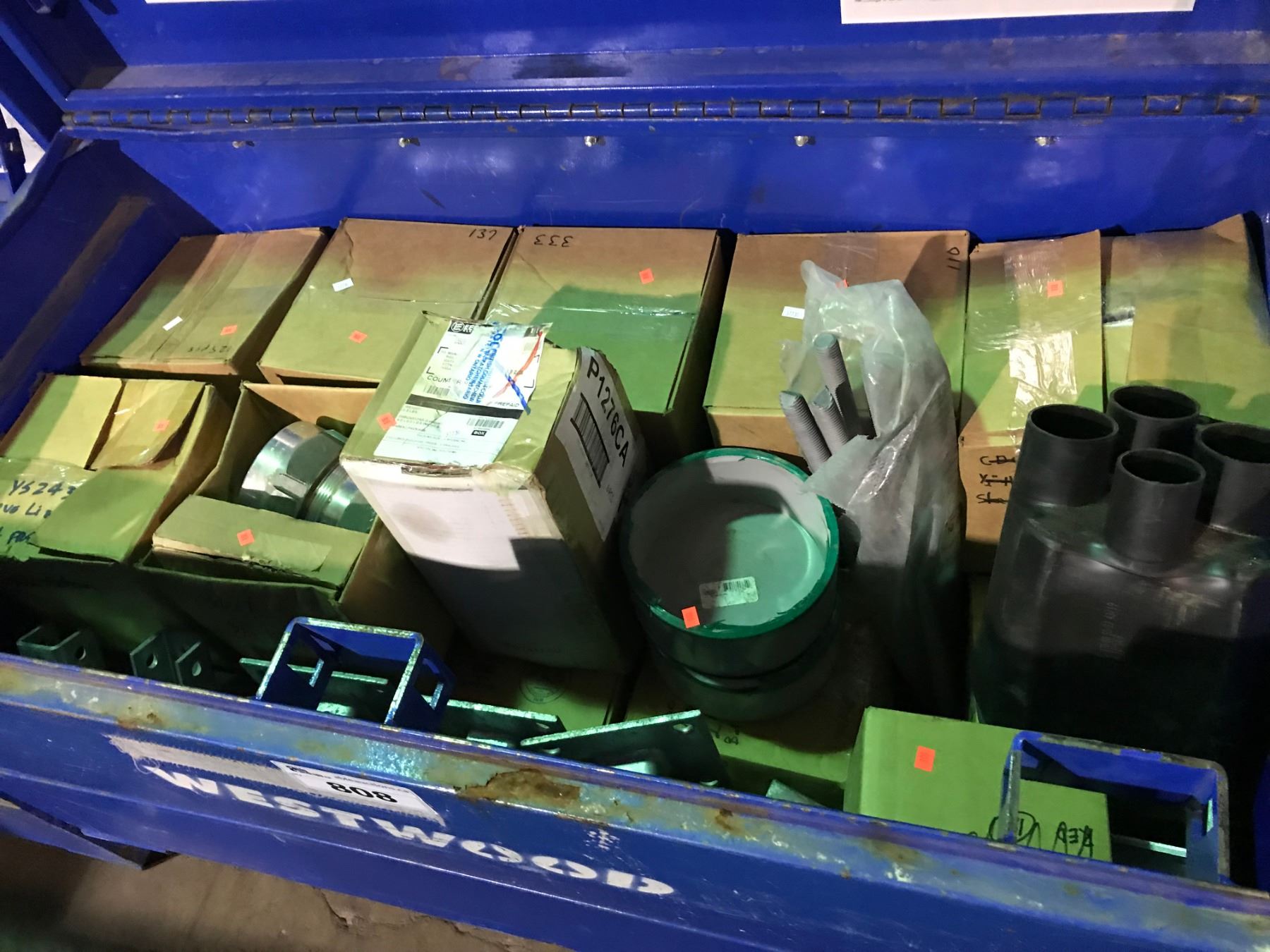 BLUE 24"X48"X34" MOBILE JOB SITE STORAGE BOX WITH CONTENTS