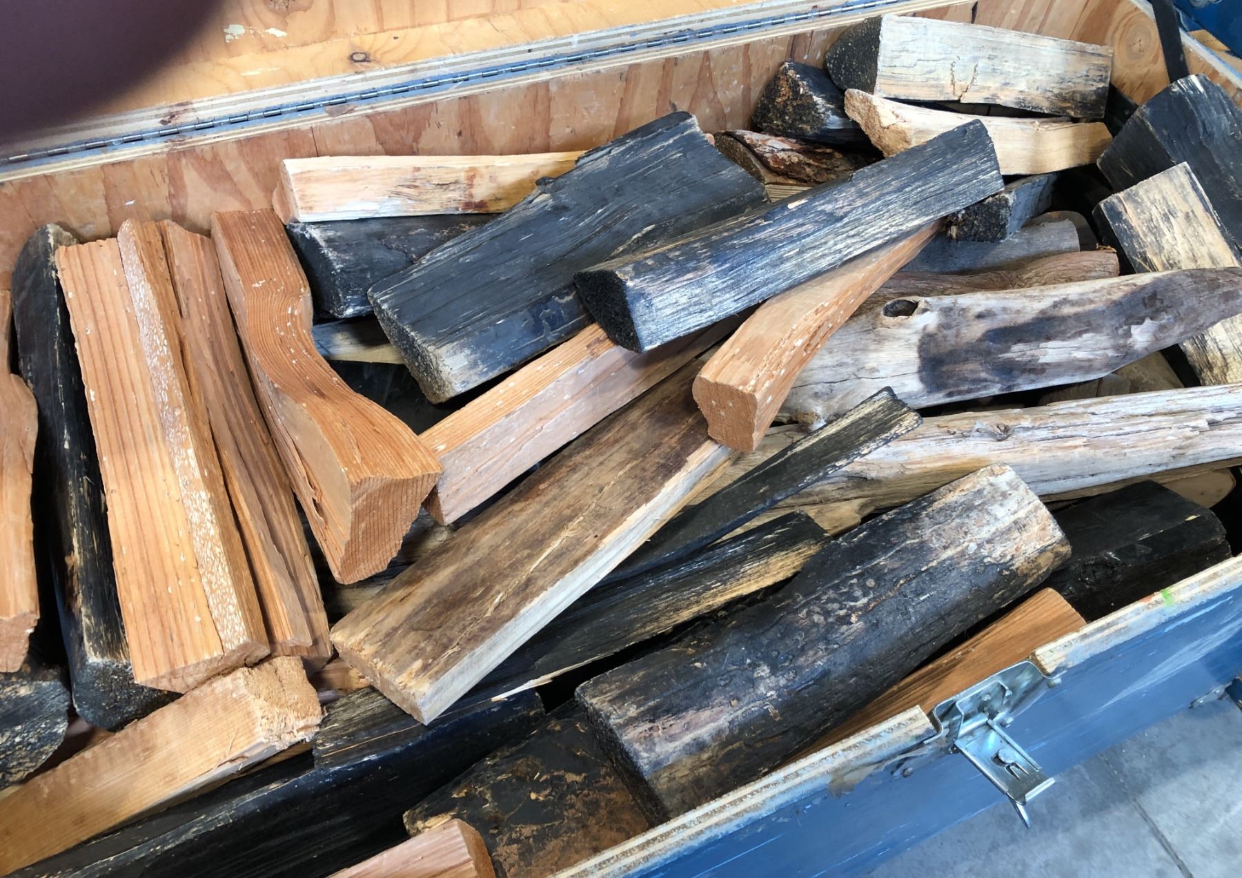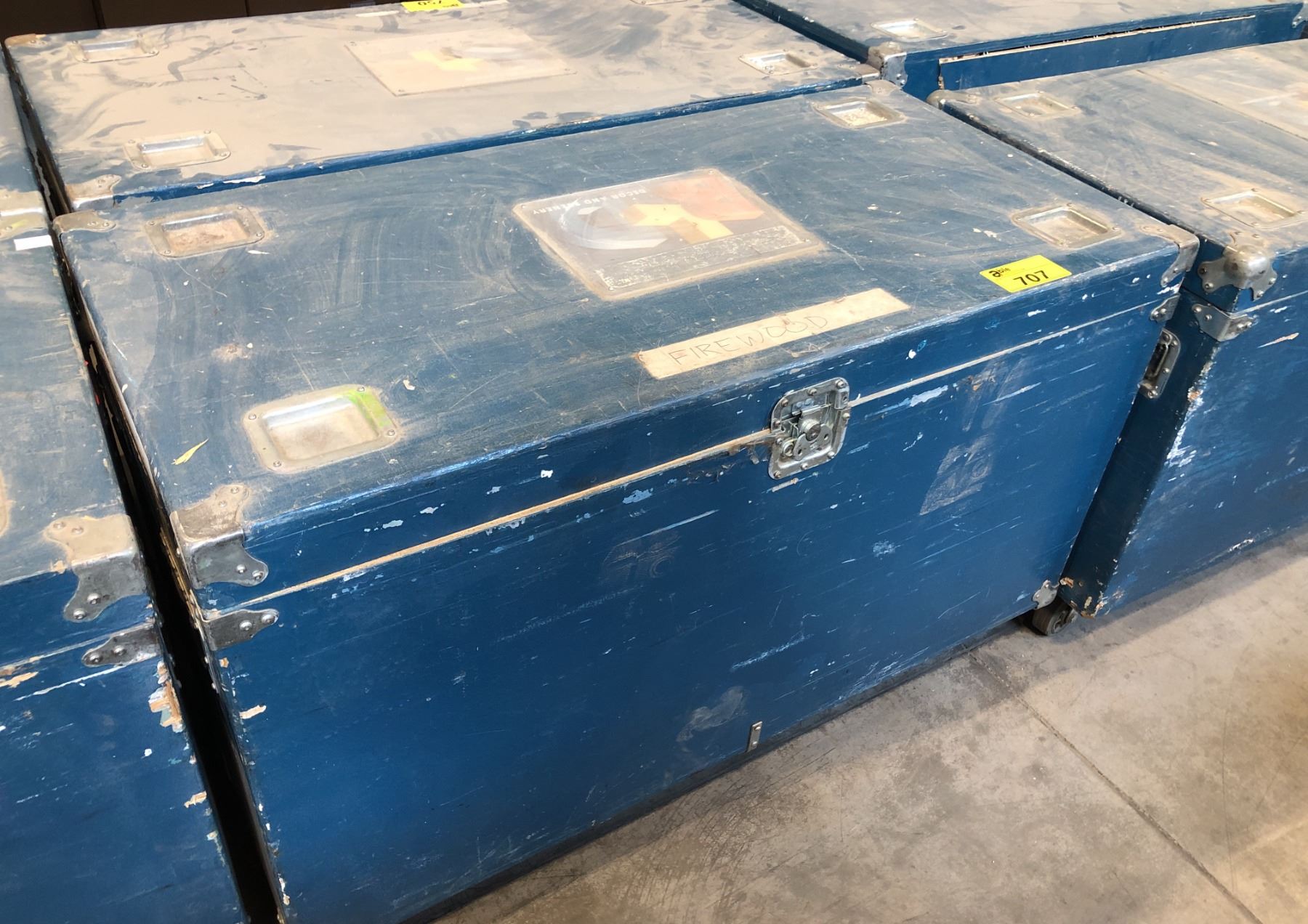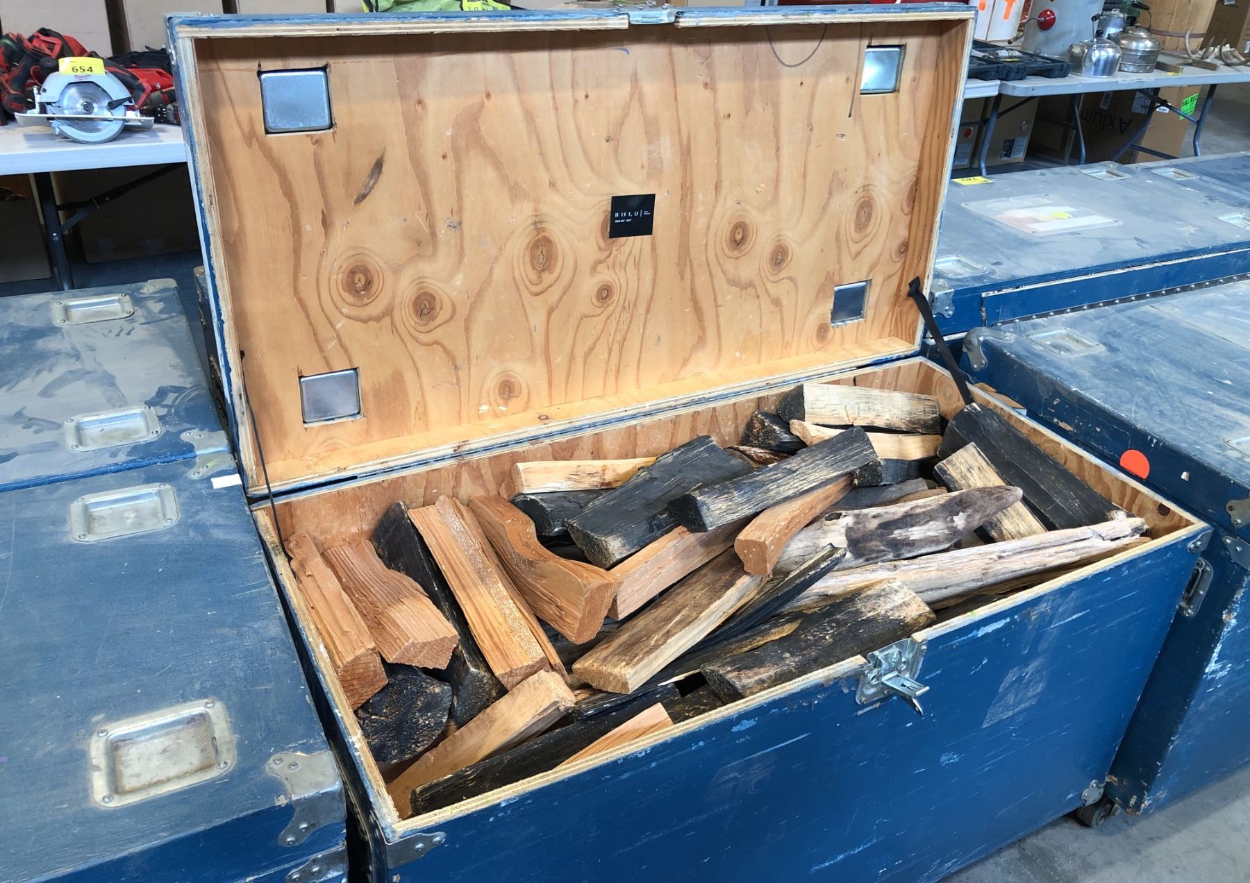 BLUE 4' X 2' X 2' MOBILE ROAD CASE WITH FIREWOOD AND DRIFTWOOD