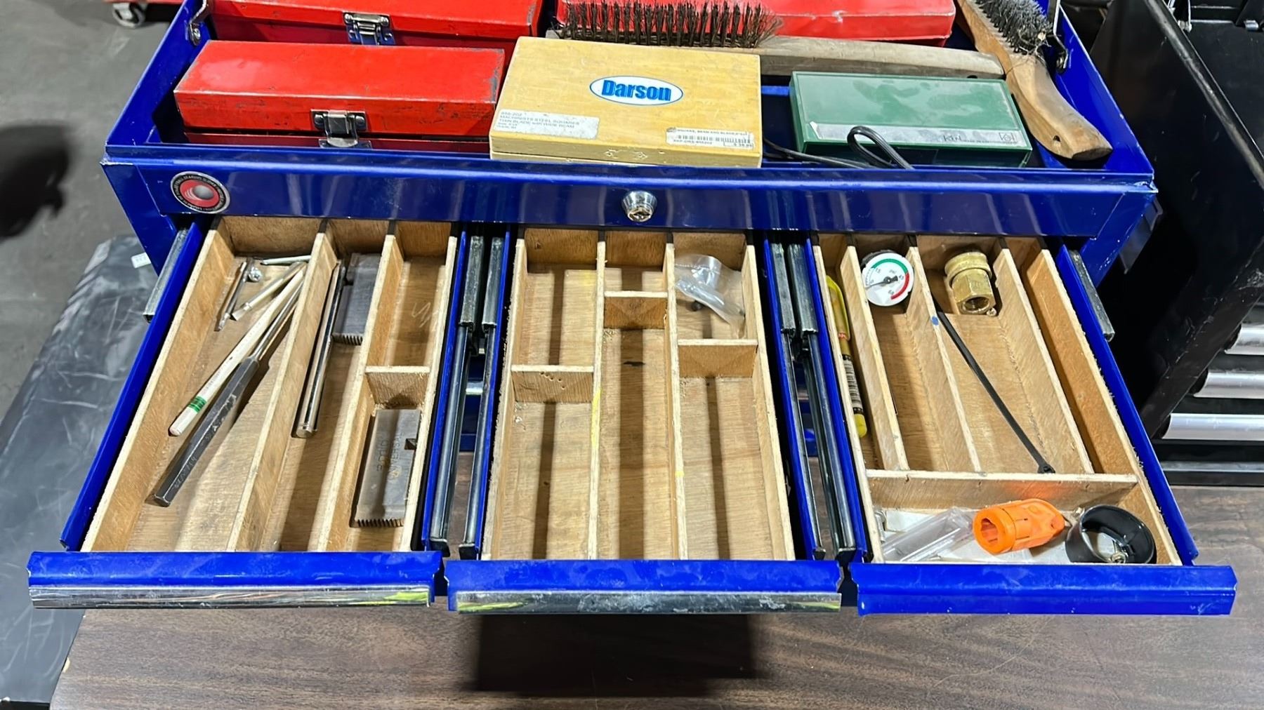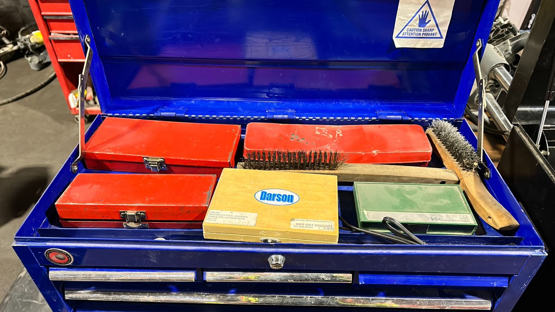 BLUE 6 DRAWER TOP TOOL BOX WITH ASSORTED TOOL CONTENTS