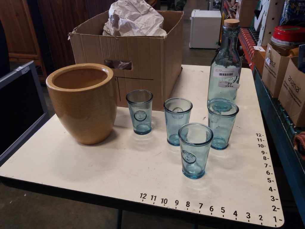 BLUE GLASS DECANTER AND GLASSES - FROM THE SEA TO THE SHORE
