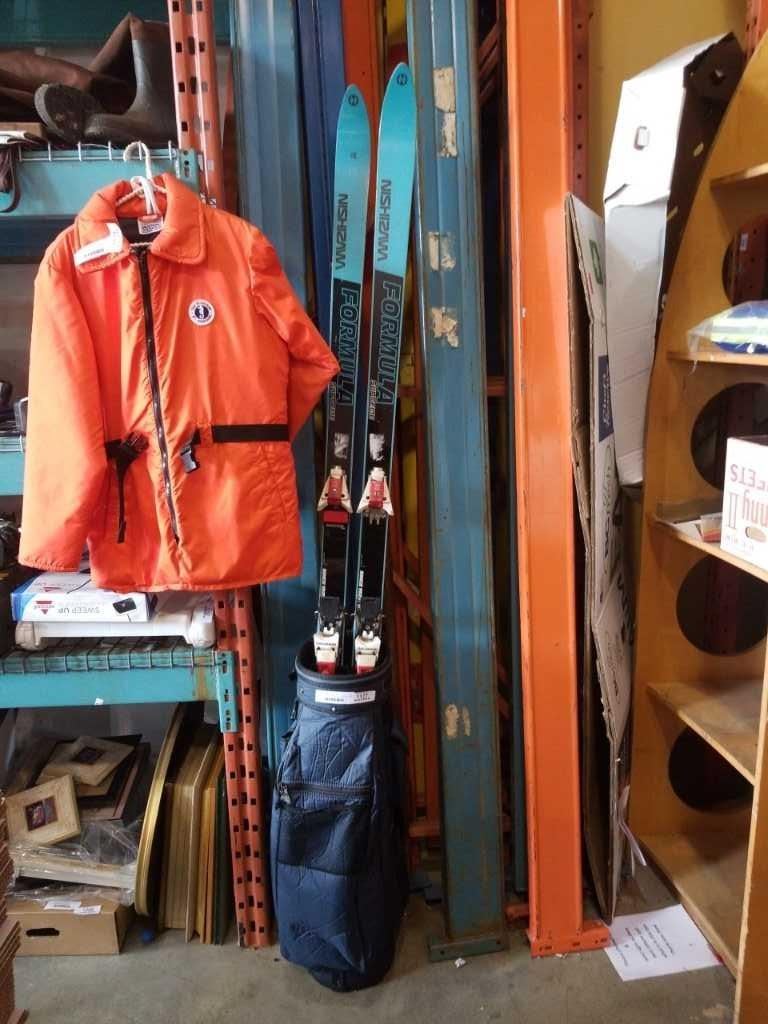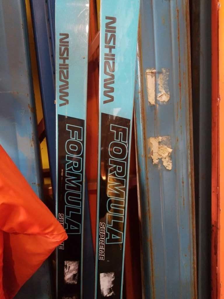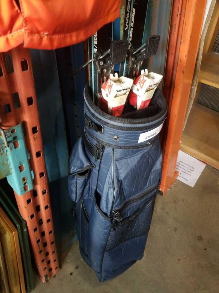 BLUE GOLF BAG AND PAIR OF NISHIZAWA SKIS