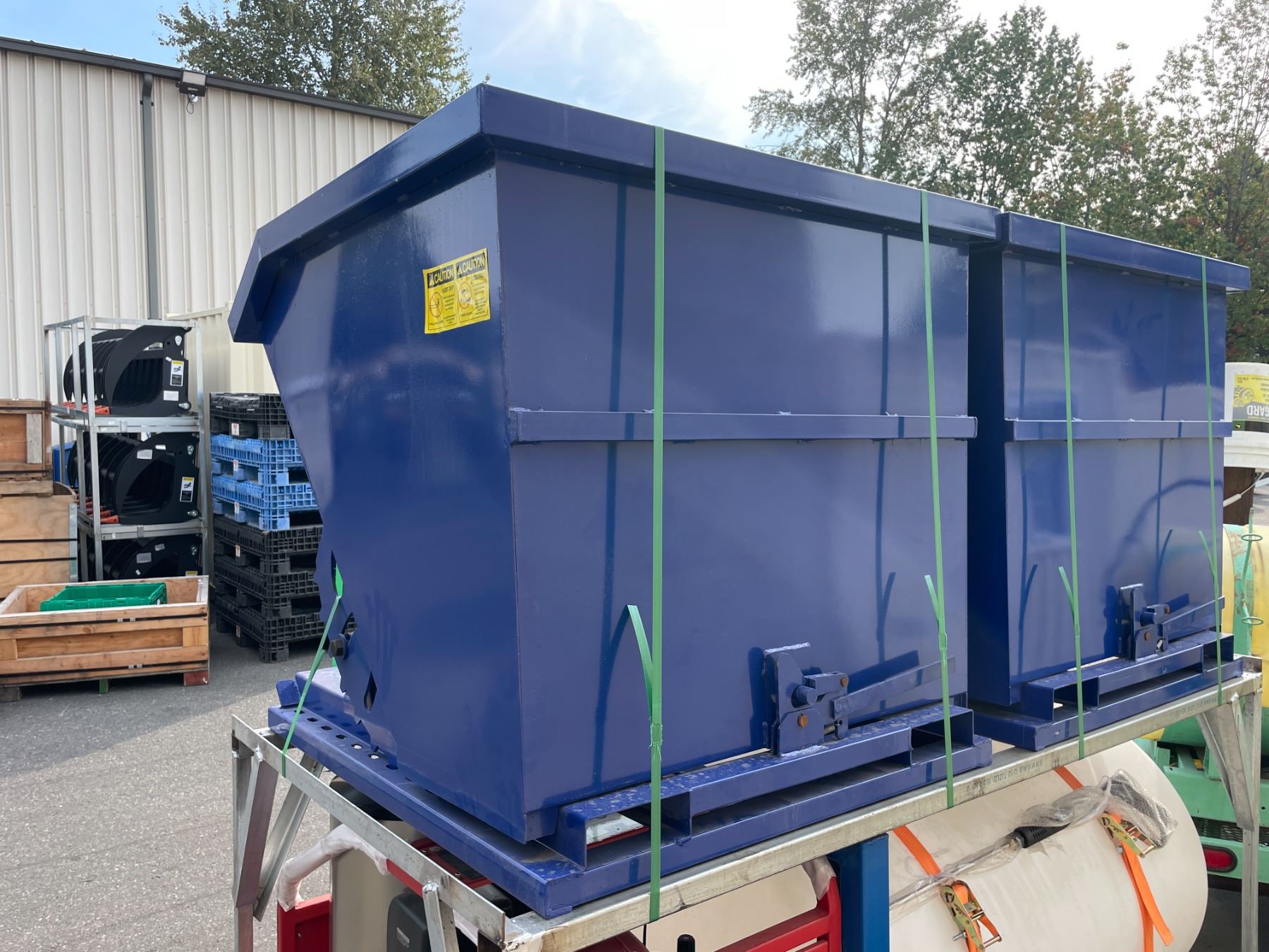 BLUE METAL 41"W X 43"D X 37"H INDUSTRIAL FORKLIFT DUMPING BIN ATTACHMENT