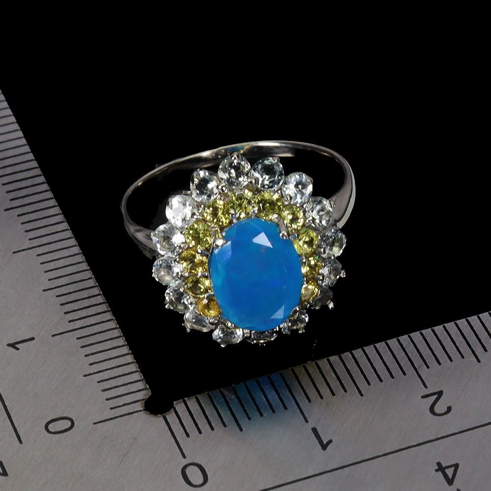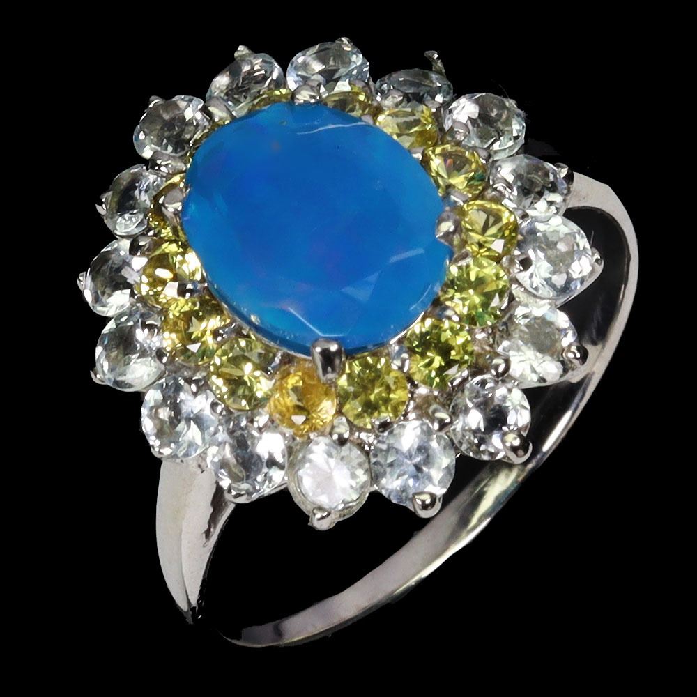 BLUE OPAL AND SAPPHIRE RING EMERALD IN 14K WHITE PLATED GOLD OVER 925 STERLING SILVER – SIZE 8 - APPRAISED REPLACEMENT VALUE
