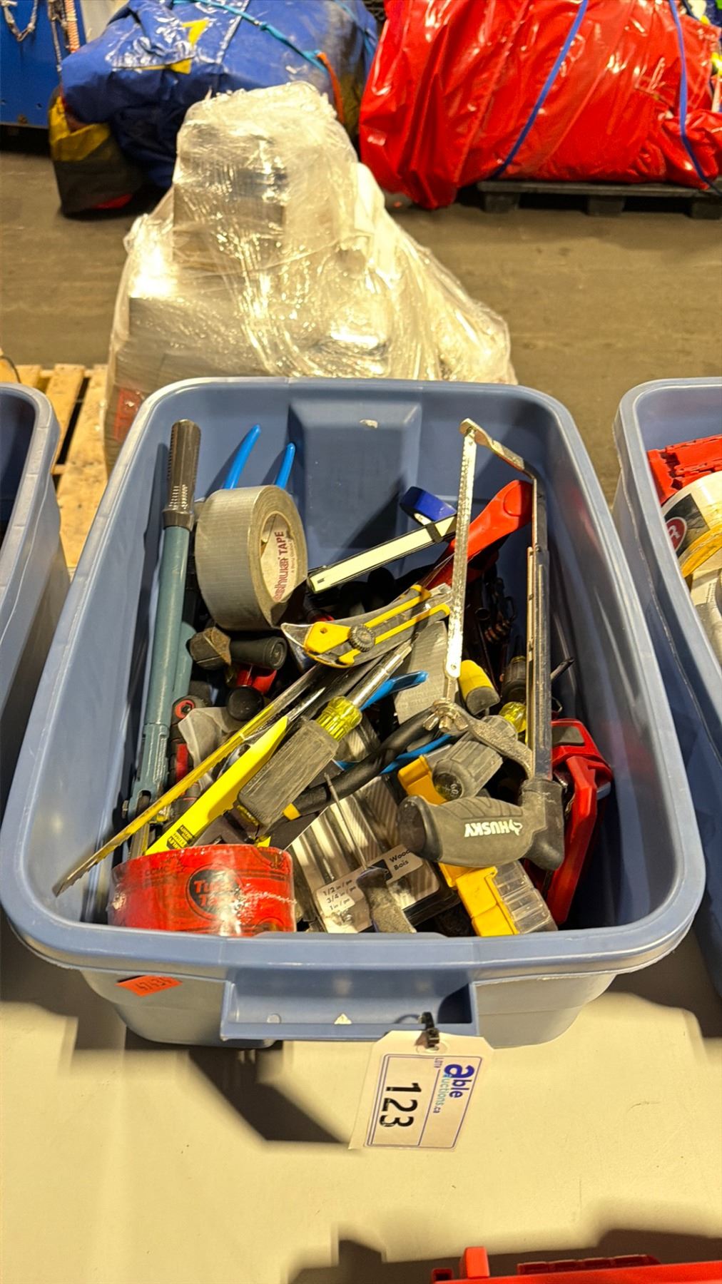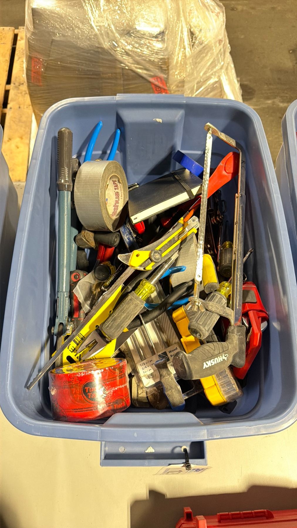 BLUE PLASTIC BIN OF ASSORTED HAND TOOLS *BIN INCLUDED&