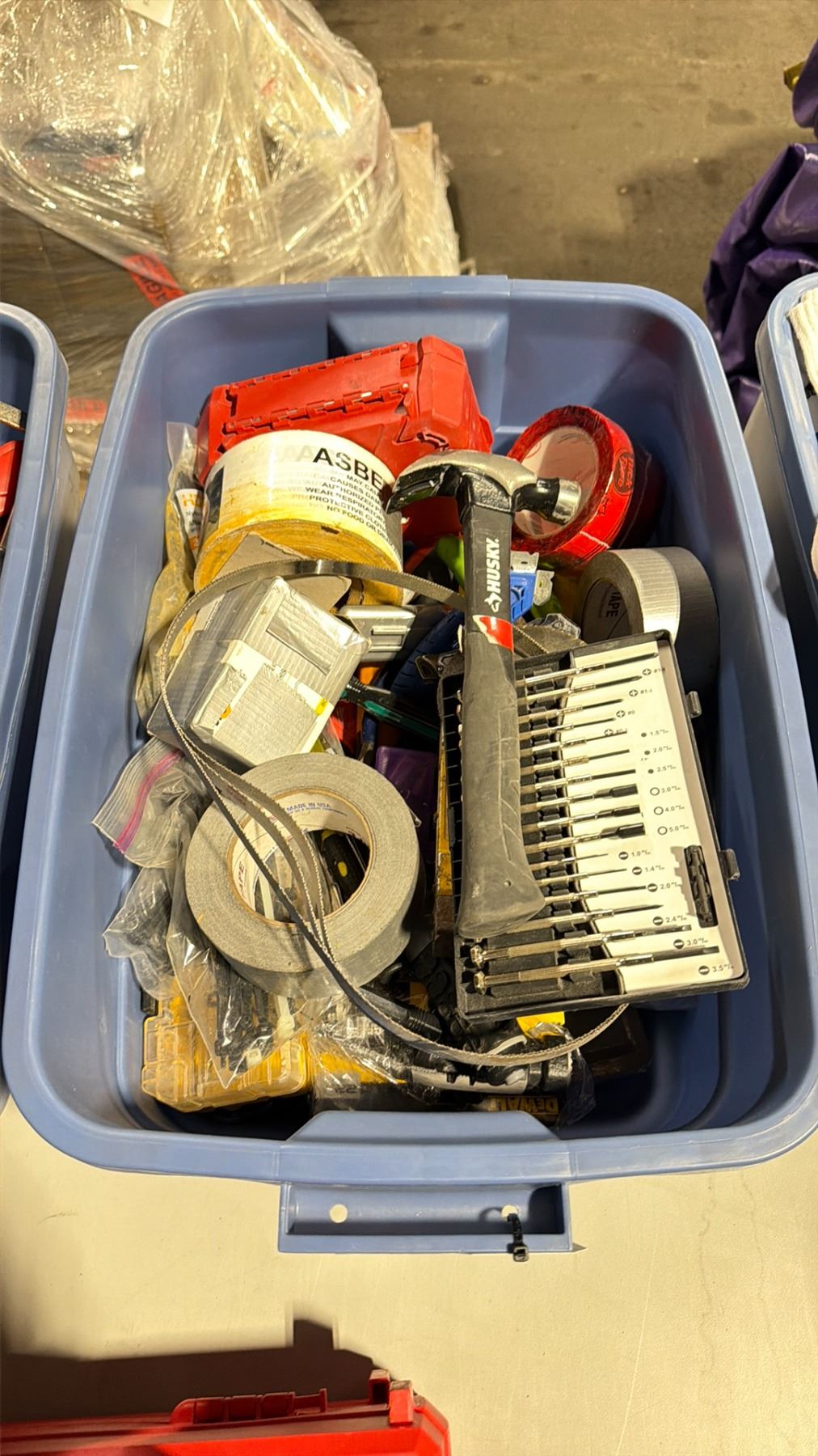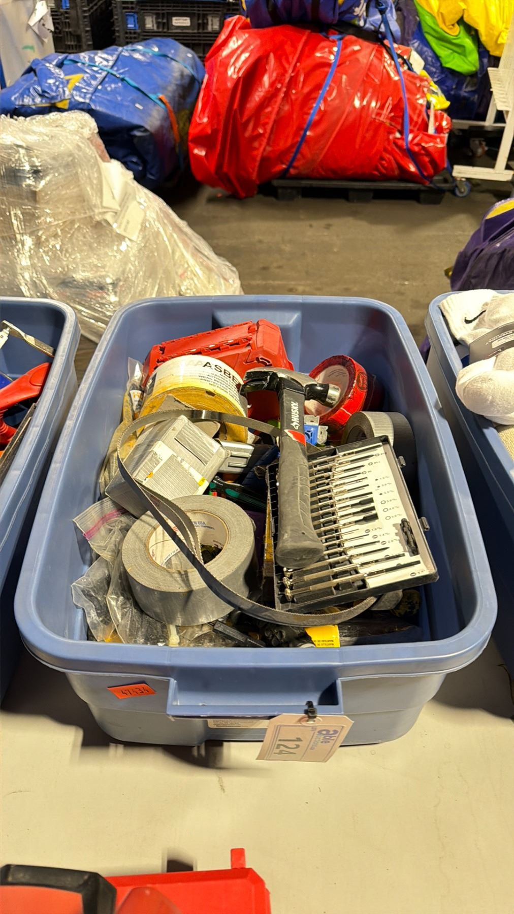 BLUE PLASTIC BIN OF ASSORTED HAND TOOLS *BIN INCLUDED&