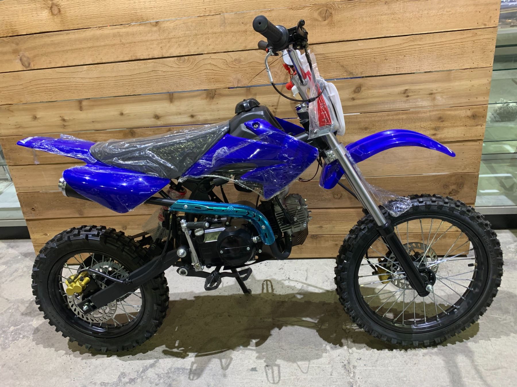 BLUE RPM 4 STROKE 125CC DIRT BIKE WITH DISC BRAKES, FRONT WHEEL 14" BACK WHEEL 17" *NO