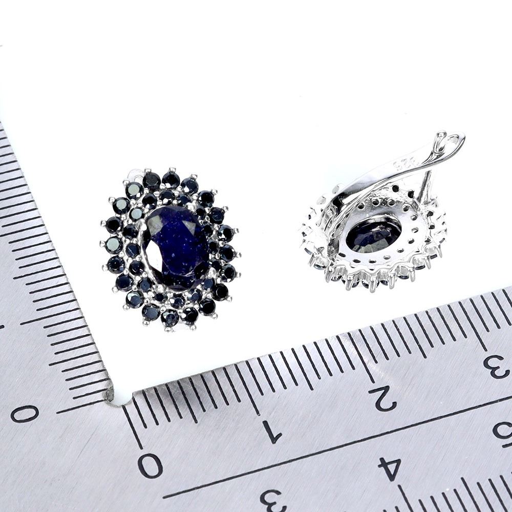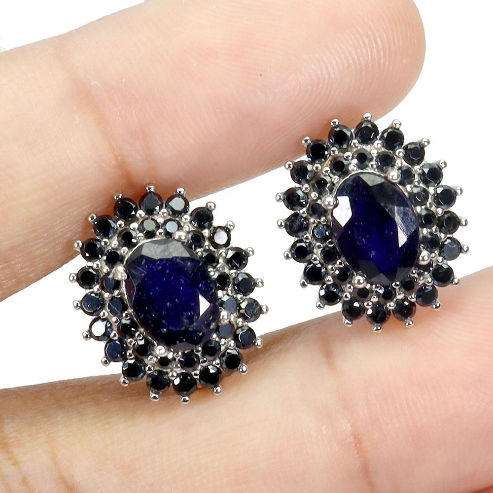BLUE SAPPHIRE AND SPINEL EARRINGS IN 14K WHITE PLATED GOLD OVER 925 STERLING SILVER - APPRAISED REPLACEMENT VALUE