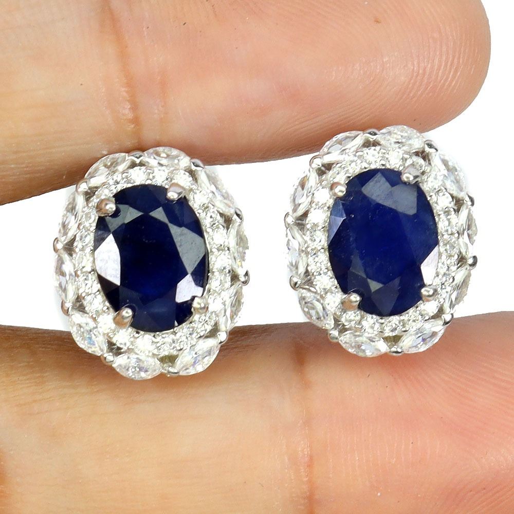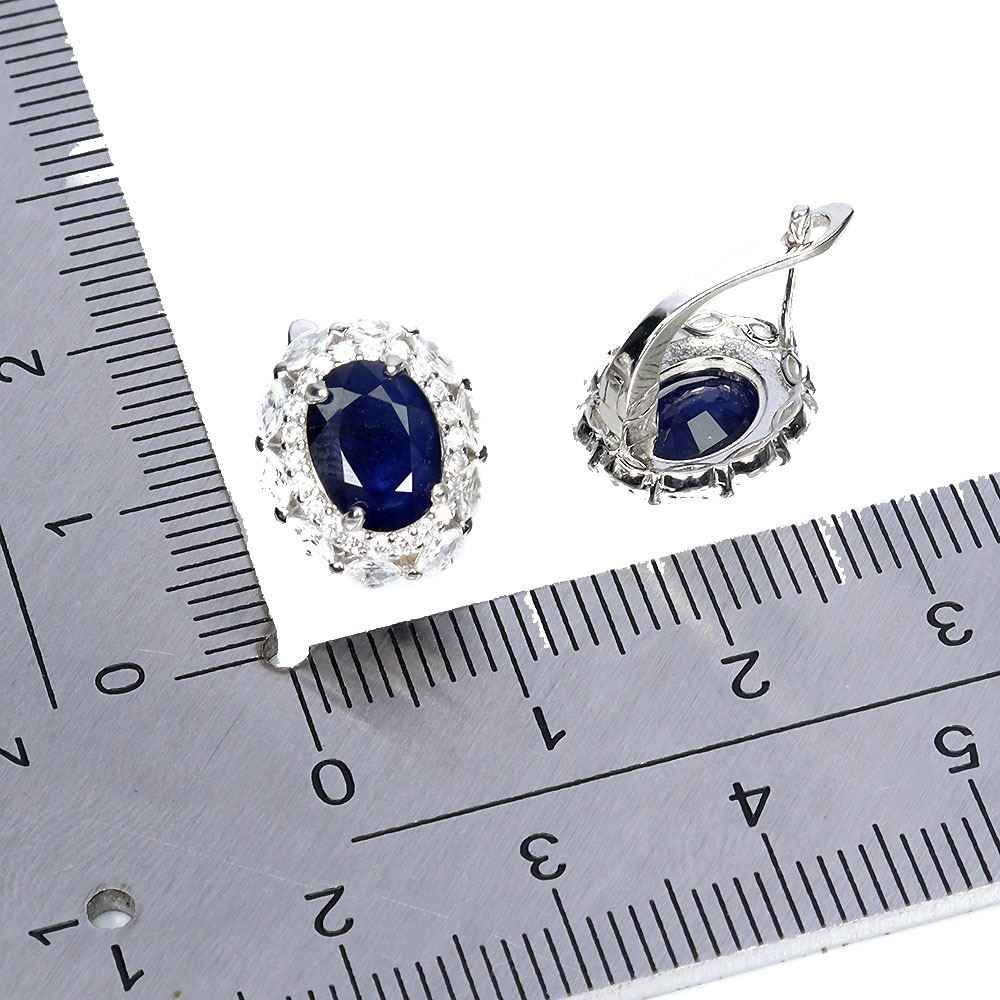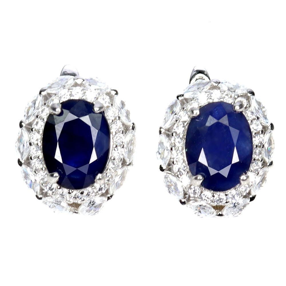 BLUE SAPPHIRE EARRINGS IN 14K WHITE PLATED GOLD OVER 925 STERLING SILVER - APPRAISED REPLACEMENT VALUE $ 520