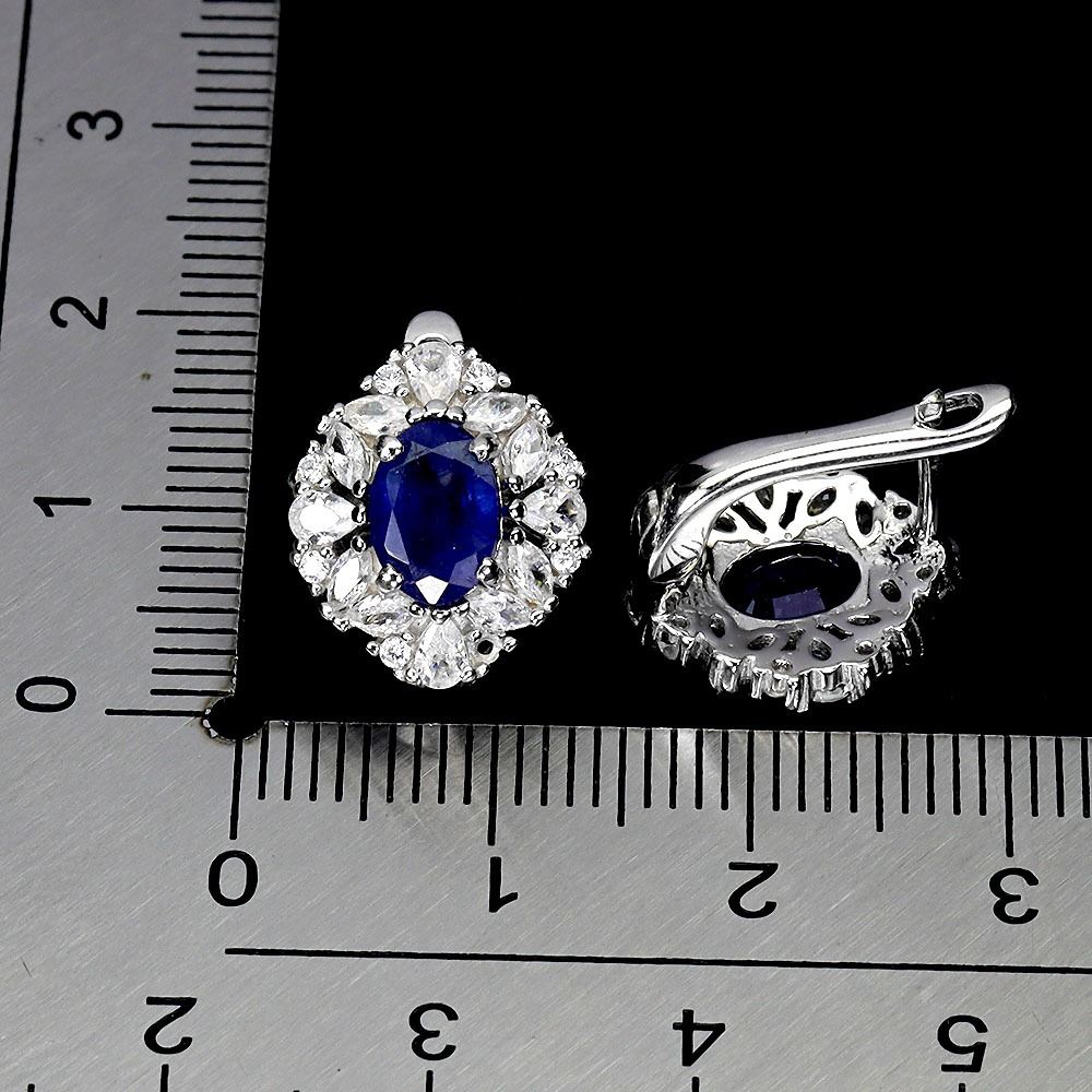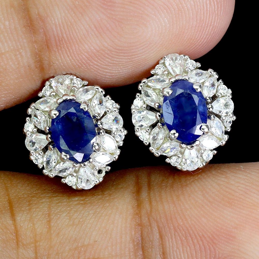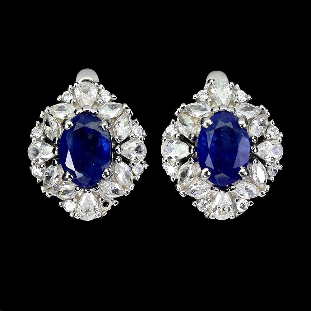 BLUE SAPPHIRE EARRINGS IN 14K WHITE PLATED GOLD OVER 925 STERLING SILVER - APPRAISED REPLACEMENT VALUE