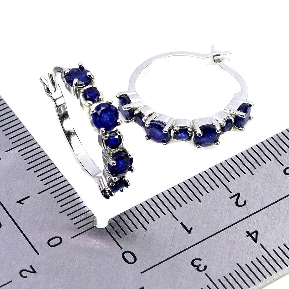 BLUE SAPPHIRE EARRINGS IN 14K WHITE PLATED GOLD OVER 925 STERLING SILVER - APPRAISED REPLACEMENT VALUE
