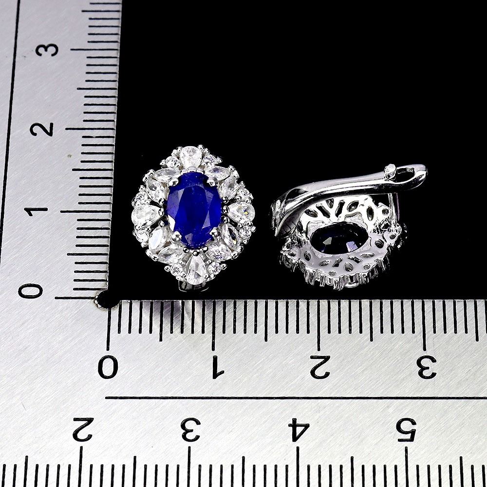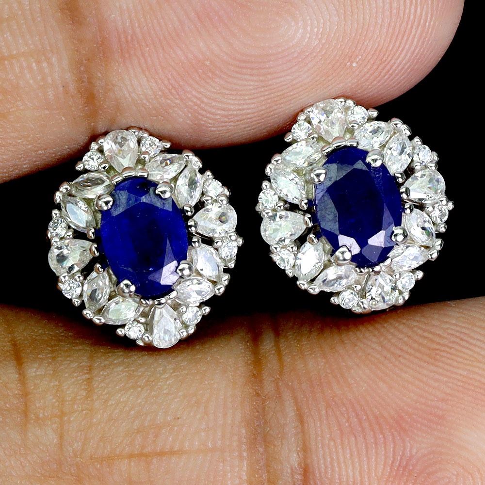 BLUE SAPPHIRE EARRINGS IN 14K WHITE PLATED GOLD OVER 925 STERLING SILVER - APPRAISED REPLACEMENT VAL