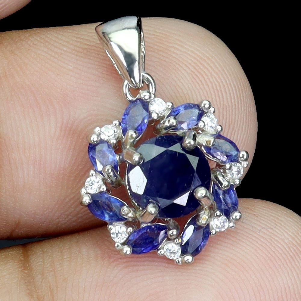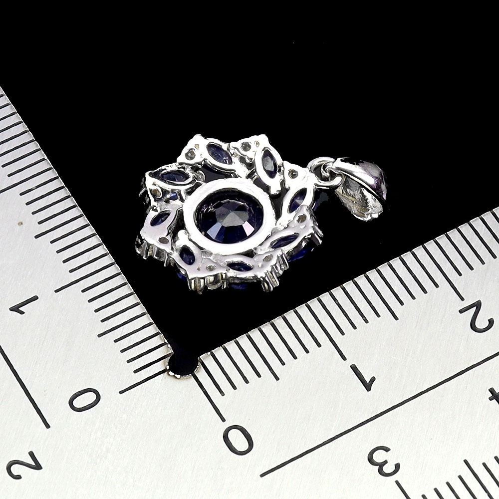 BLUE SAPPHIRE PENDANT IN 14K WHITE PLATED GOLD OVER 925 STERLING SILVER - APPRAISED REPLACEMENT VALUE
