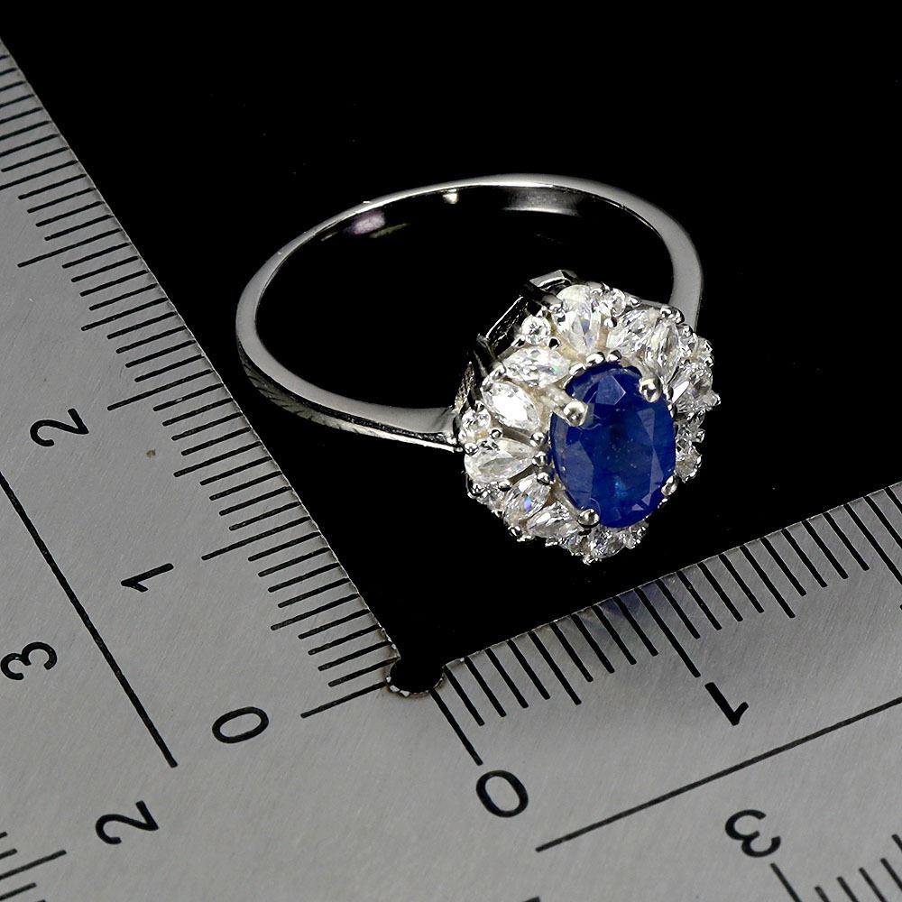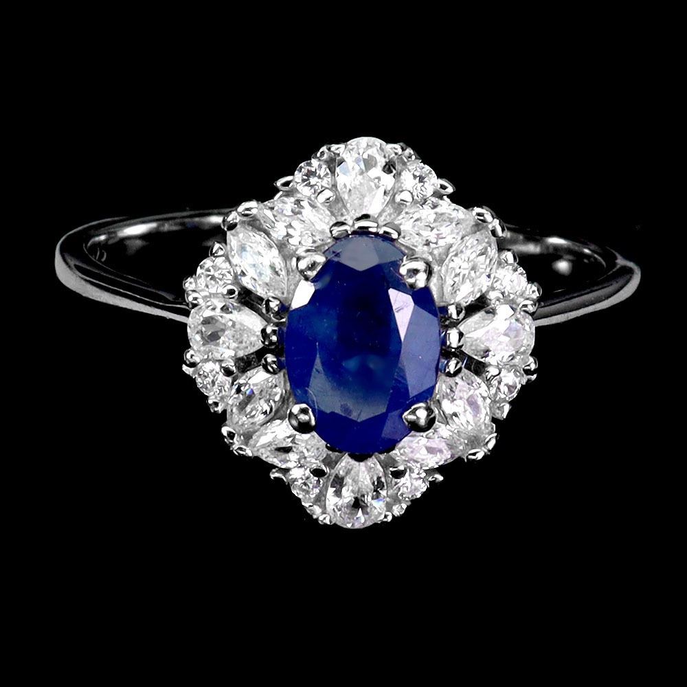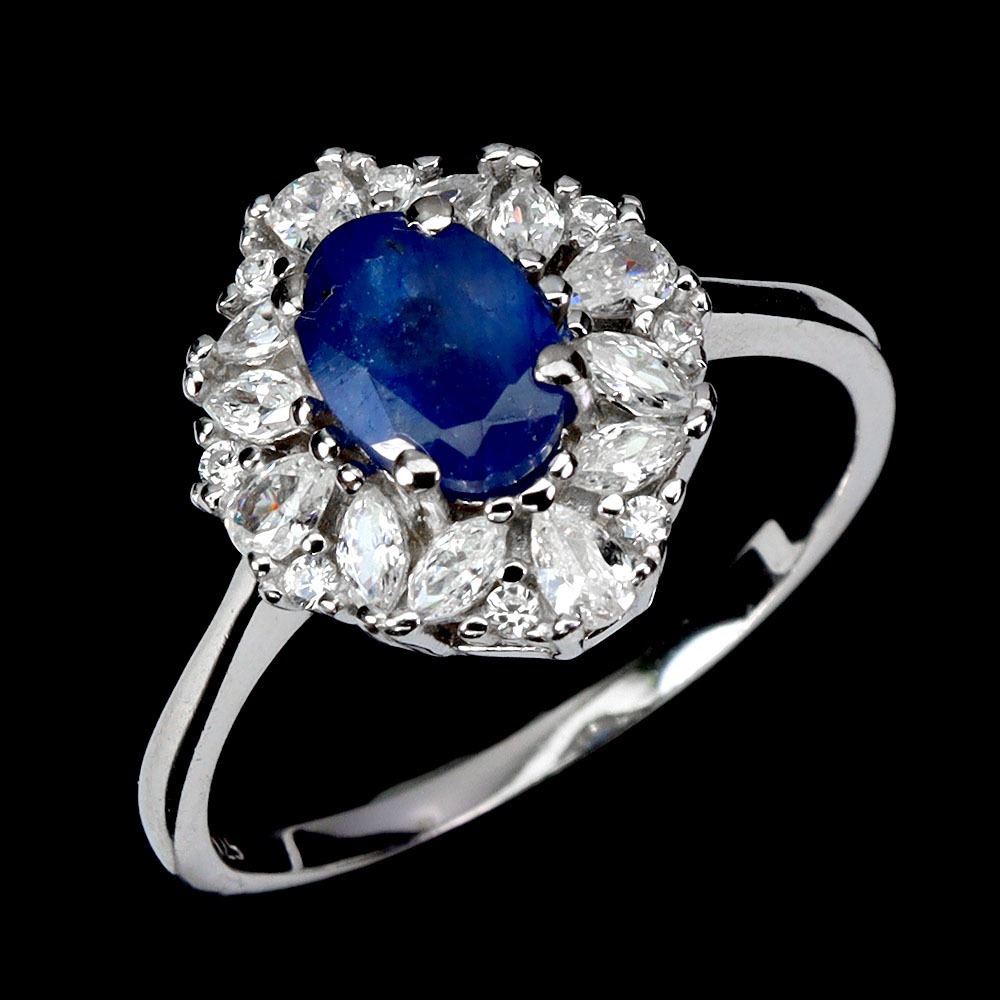 BLUE SAPPHIRE RING IN 14K WHITE PLATED GOLD OVER 925 STERLING SILVER - SIZE 8 - APPRAISED REPLACEMEN