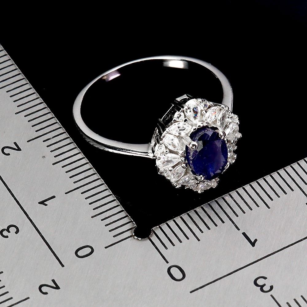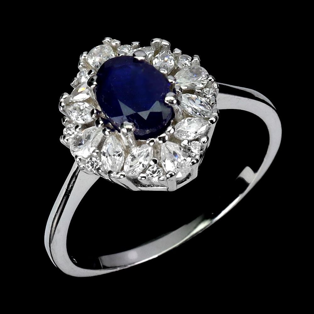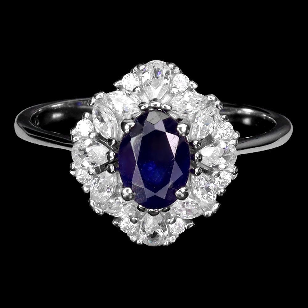 BLUE SAPPHIRE RING IN 14K WHITE PLATED GOLD OVER 925 STERLING SILVER - SIZE 8 - APPRAISED REPLACEMEN