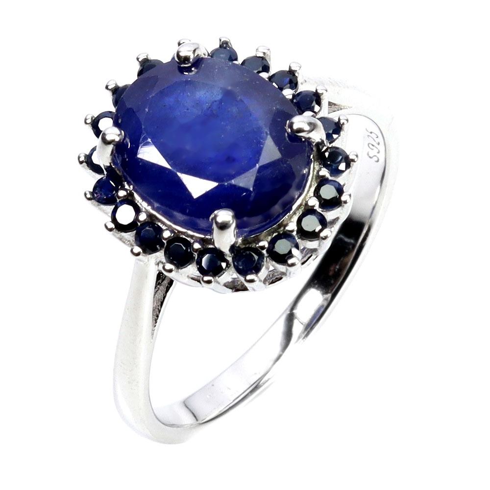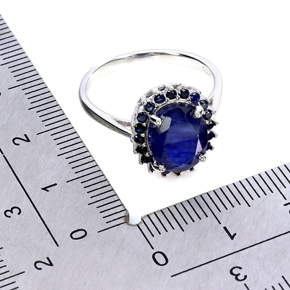 BLUE SAPPHIRE RING IN 14K WHITE PLATED GOLD OVER 925 STERLING SILVER - SIZE 8 - APPRAISED REPLACEMENT VALUE