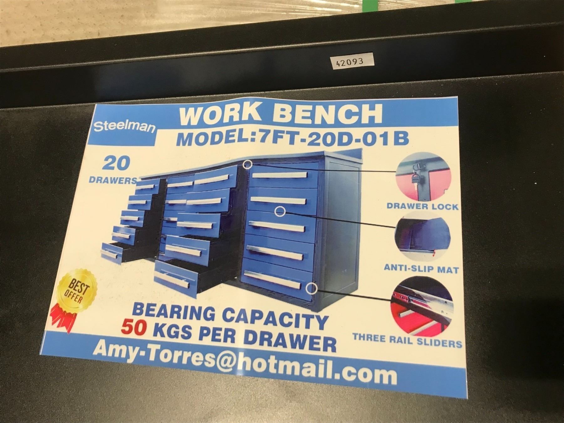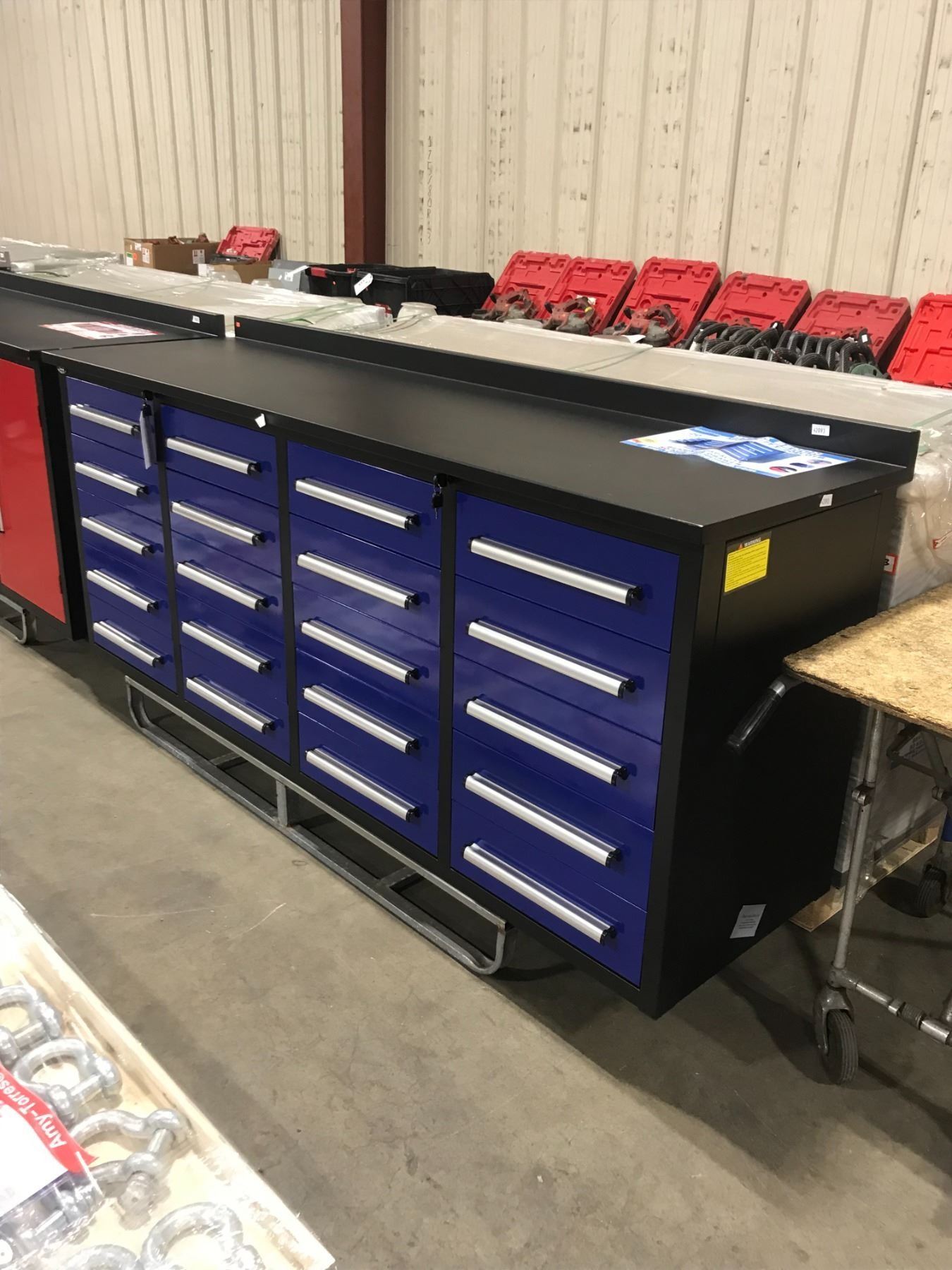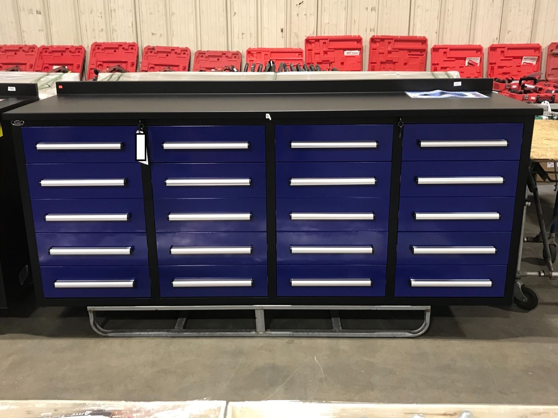 BLUE STEELMAN 20 DRAWER WORKBENCH H36  X W88  X D24  WITH ANTI-SLIP LINING