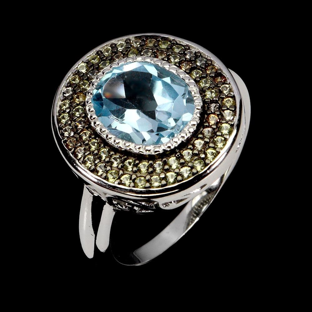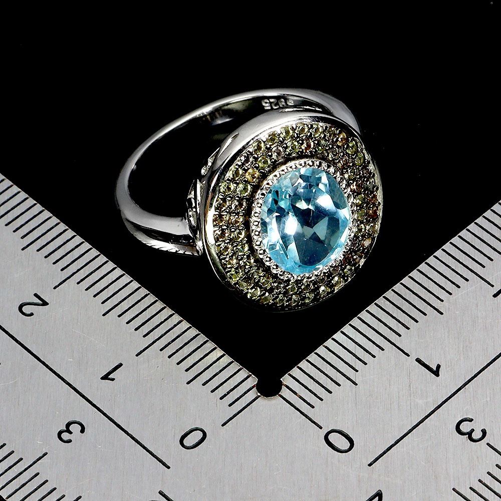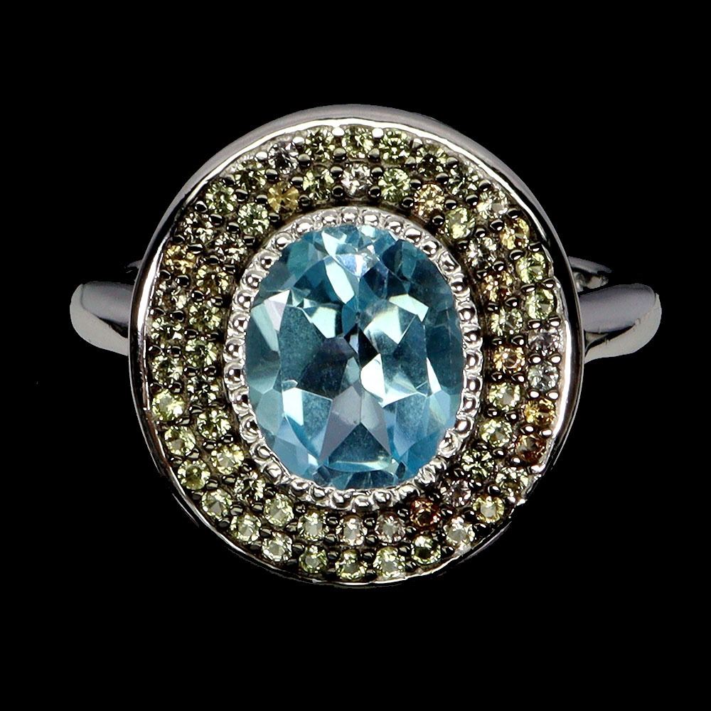 BLUE TOPAZ AND SAPPHIRE RING IN 14K WHITE PLATED GOLD OVER 925 STERLING SILVER - SIZE 7 - APPRAISED REPLACEMENT VALUE