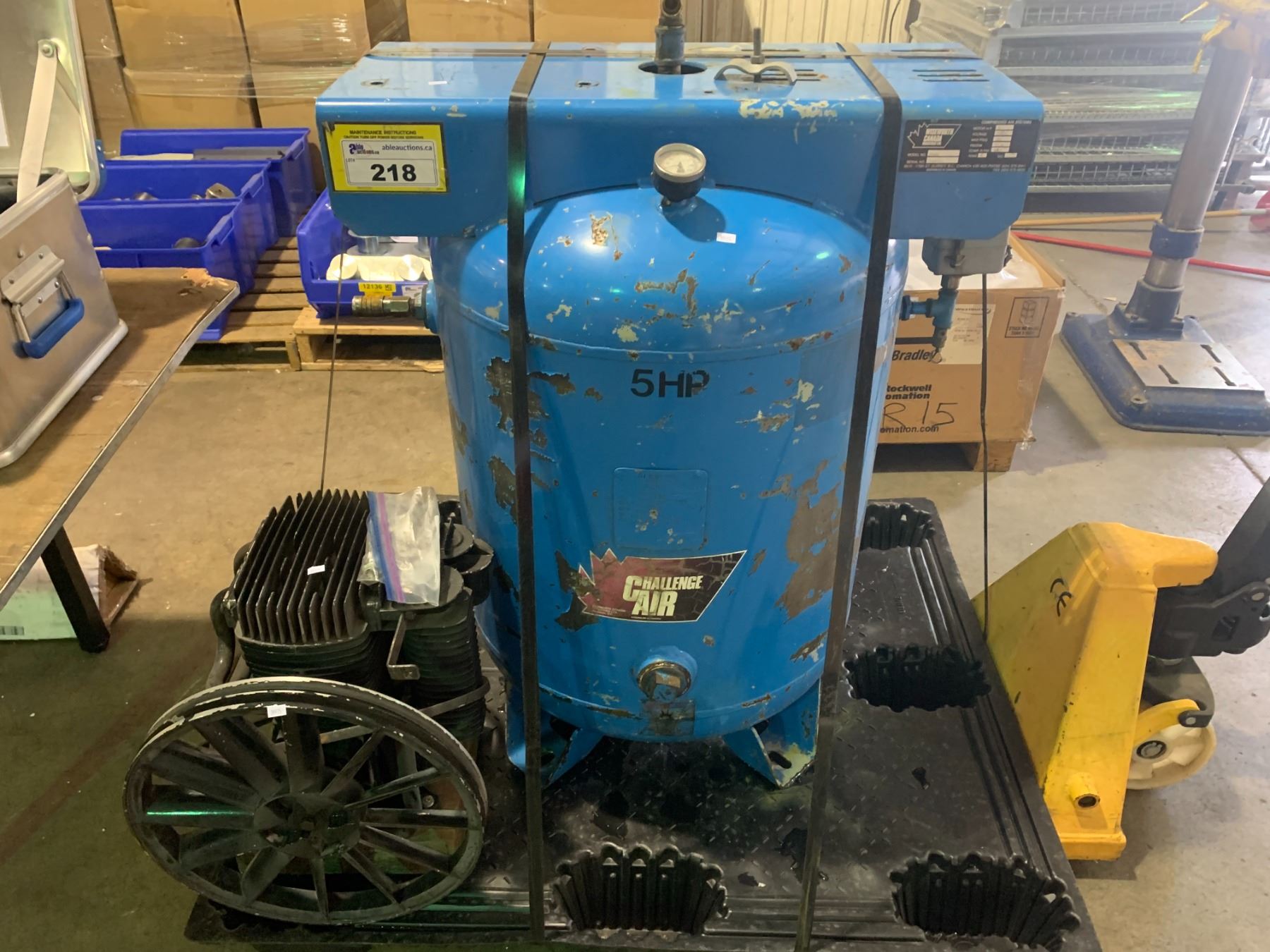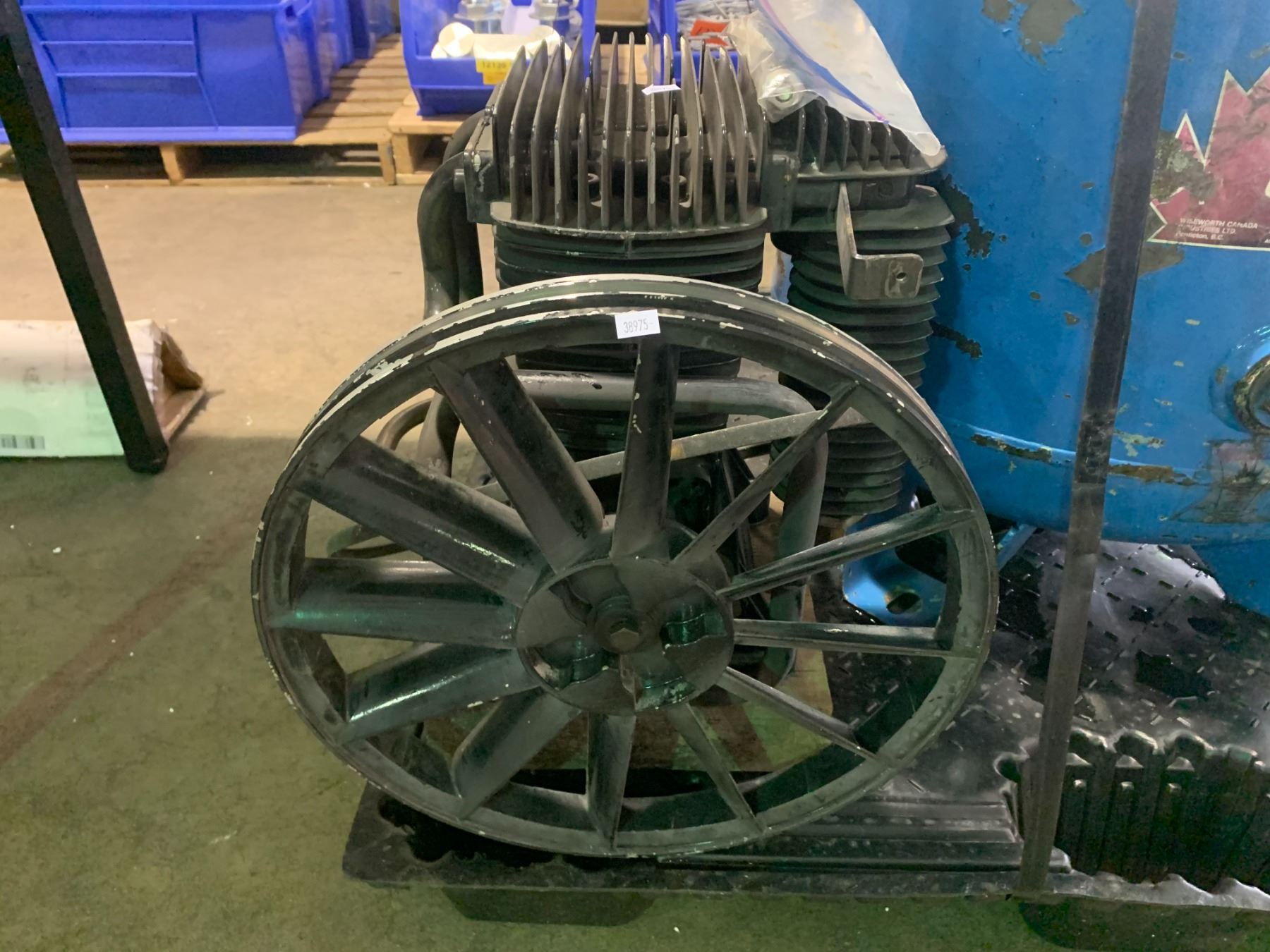 BLUE VERTICAL INDUSTRIAL AIR COMPRESSOR TANK WITH COMPRESSOR HEAD