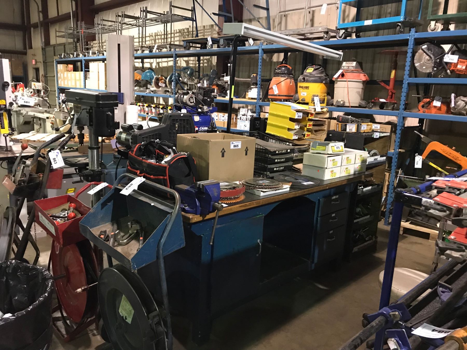 BLUE WOODEN HEAVY DUTY POWERED ILLUMINATED WORK BENCH WITH BENCH VISE
