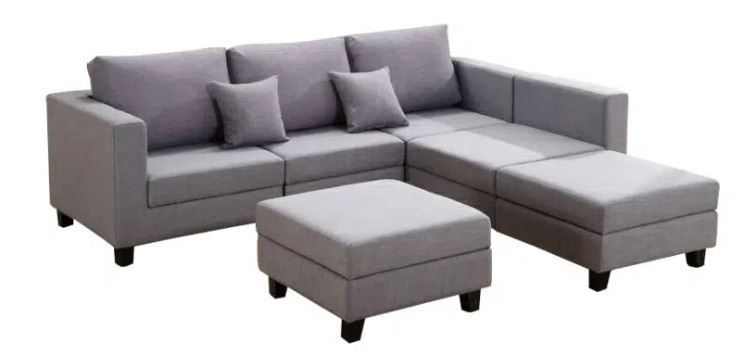 Brand new in box. flexible sixpiece modular couch that can form L or U shape or a sofa bed; each piece has storage under the seat. Corner pieces about 41square and ottoman 41square; colours dark grey or light grey. Selected variant: Dark Grey.