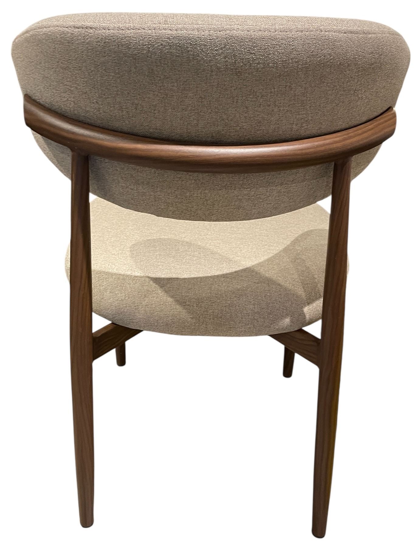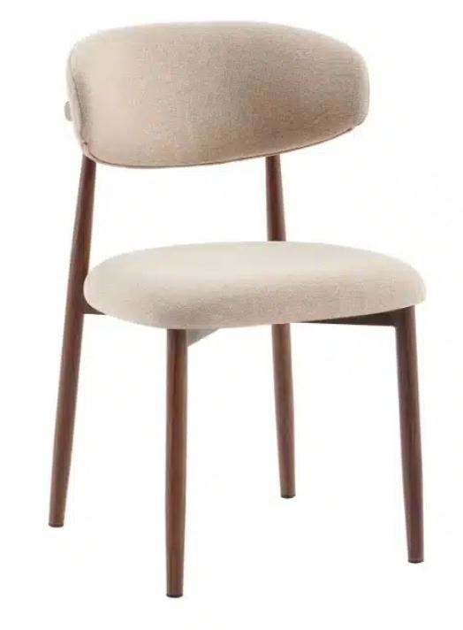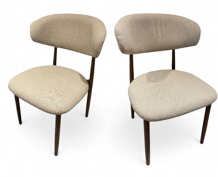 Brand new in box. pair of modern teddy fabric dining chairs with metal frame and wood colour finish; colour beige. Selected variant: Group of 2 Dining Chair.