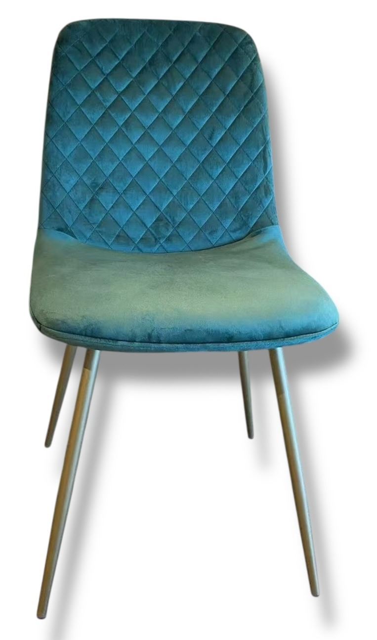 Brand new in box. set of four comfy dining chairs with quality fabric cover and metal legs. Available in light grey, blue velvet, green velvet or white leather. Selected variant: Group of 4 - Green.