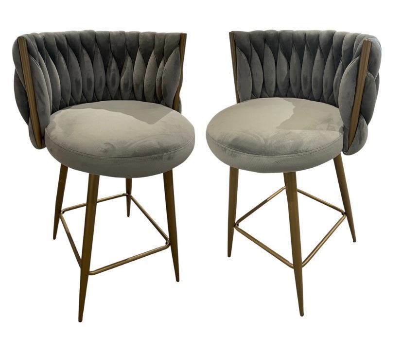 Brand new in box. set of two modern velvet chairs with golden base. Selected variant: Group of 2 Bar Chair - Grey.