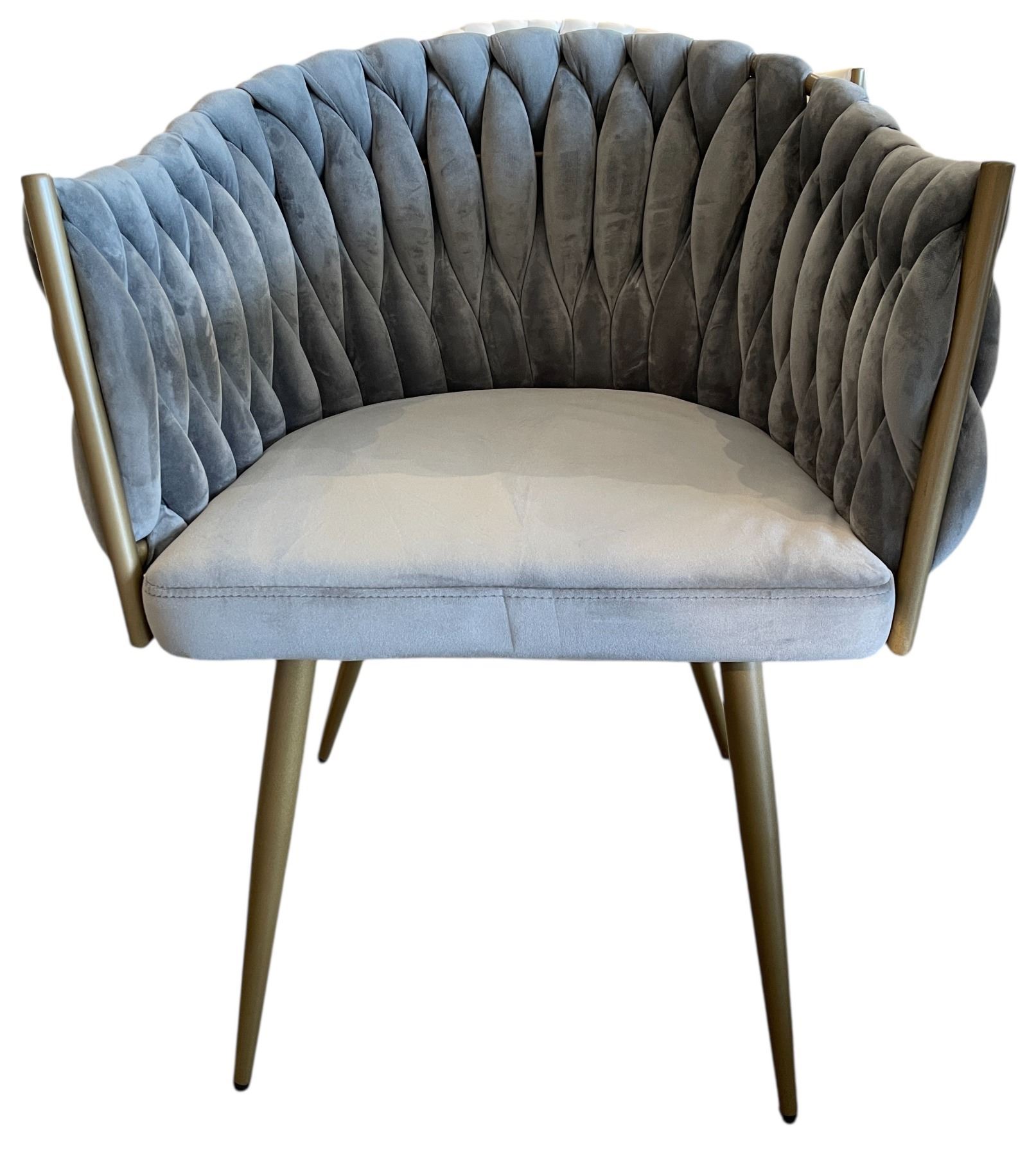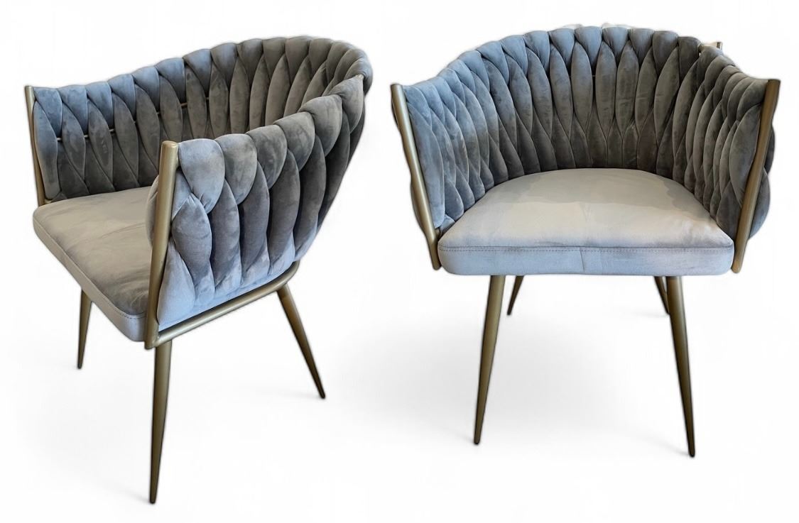 Brand new in box. set of two modern velvet chairs with golden base. Colour options grey or beige; also available as bar chairs. Selected variant: Group of 2 - Grey.