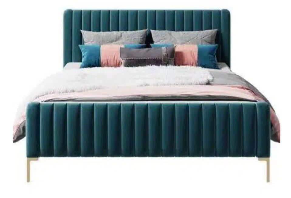 Brand new in box. modern design platform bed frame in velvet or regular fabric with 51high headboard. Colour options emerald, beige or grey. Selected variant: Queen - Green.