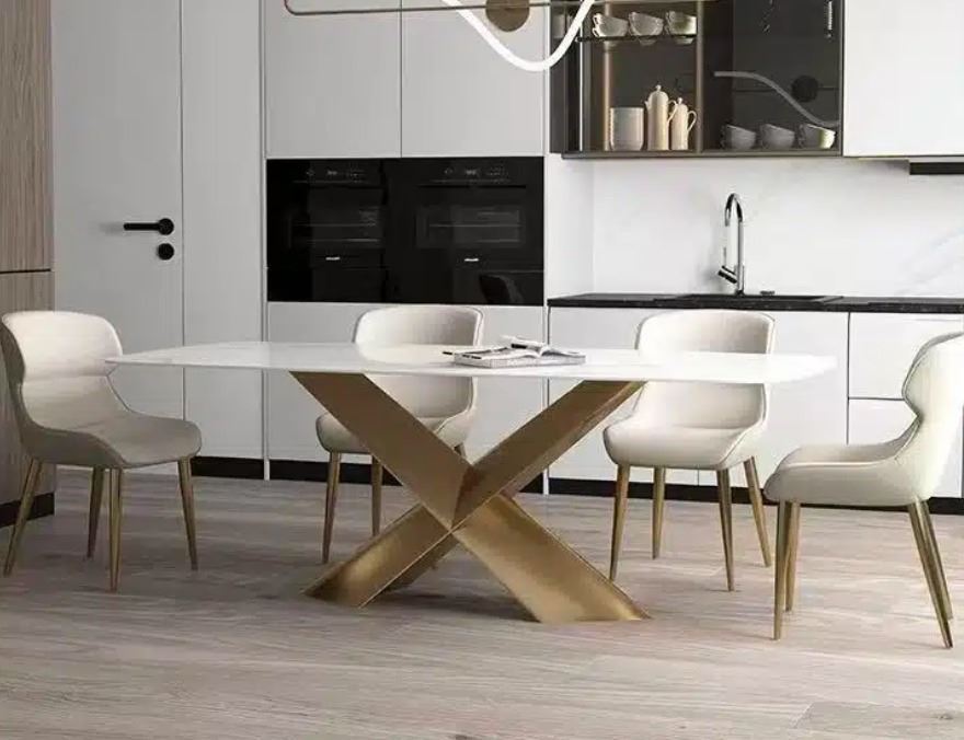 Brand new in box. condosize modern rectangle dining table with sintered stone top and stylish metal base. Size about 59◊31.5◊30; available in cloud or cool colour patterns. Selected variant: 59" cloud. - needs minor adjustment to the base - Preview is recommended for this piece.