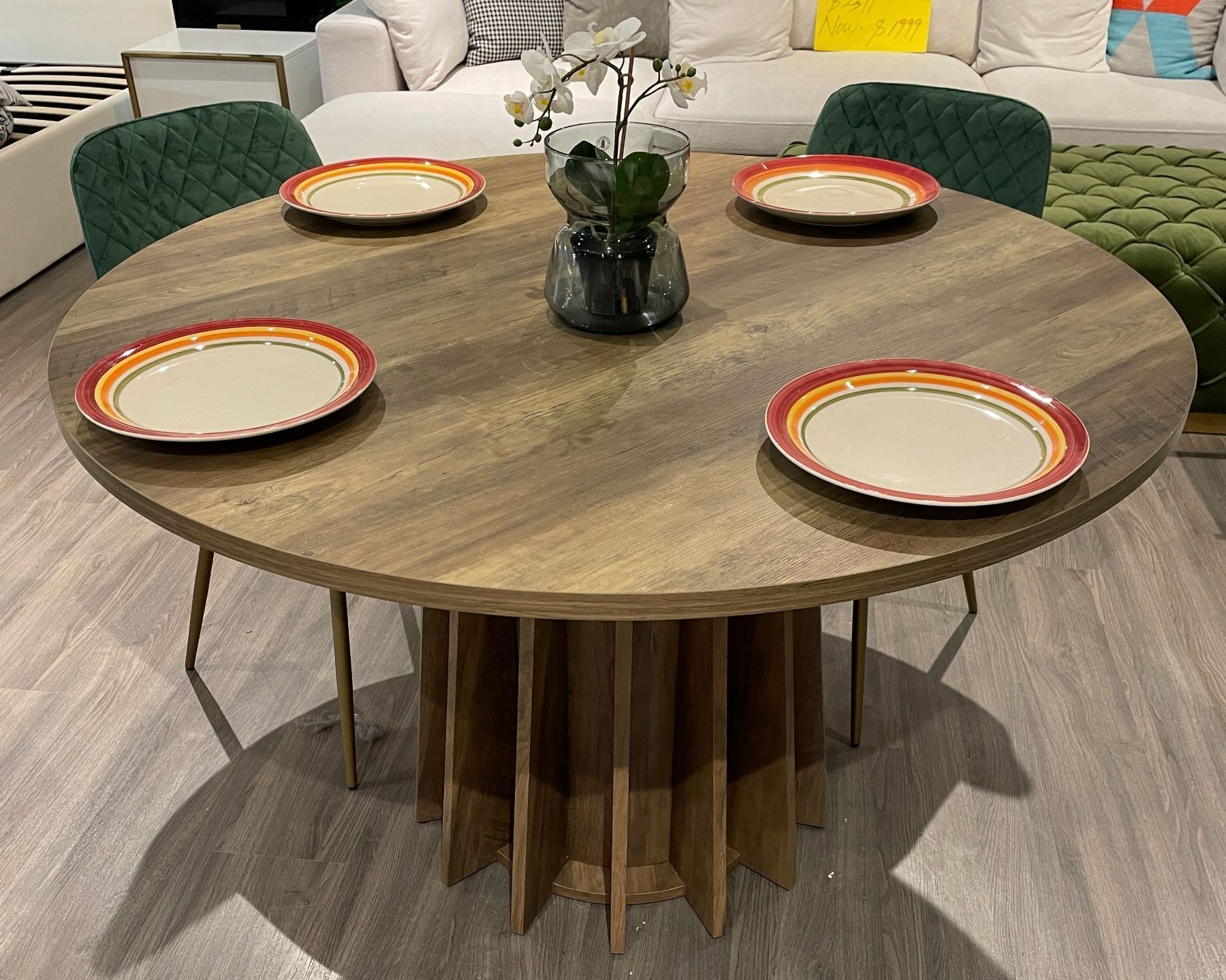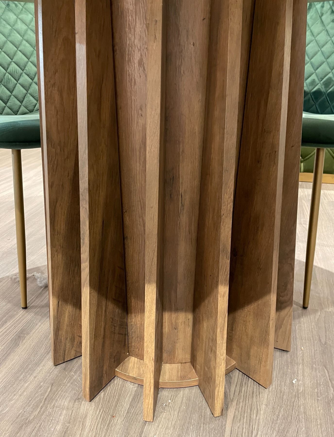Brand new in box. woodcolour round dining table with unique design base. Diameter 47. Selected variant: 47".