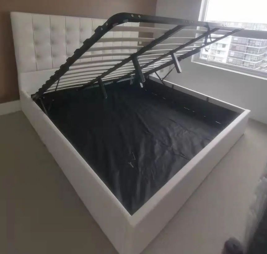 Brand new in box. leather bed frame with tufted headboard and lift‑up storage. Colours black or white. Selected variant: King - White.