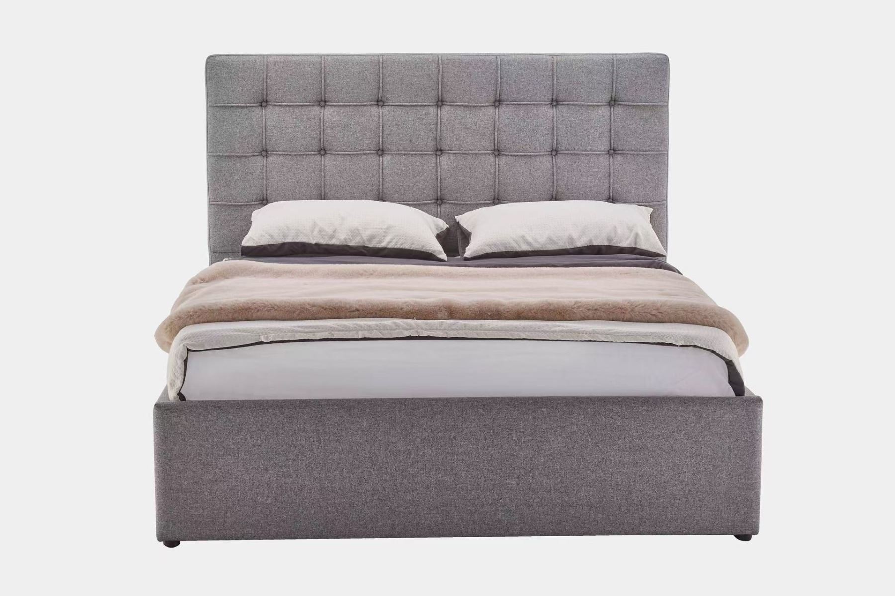 Brand new in box. leather bed frame with tufted headboard and liftup storage. Colours black or white. Selected variant: Queen - Grey.