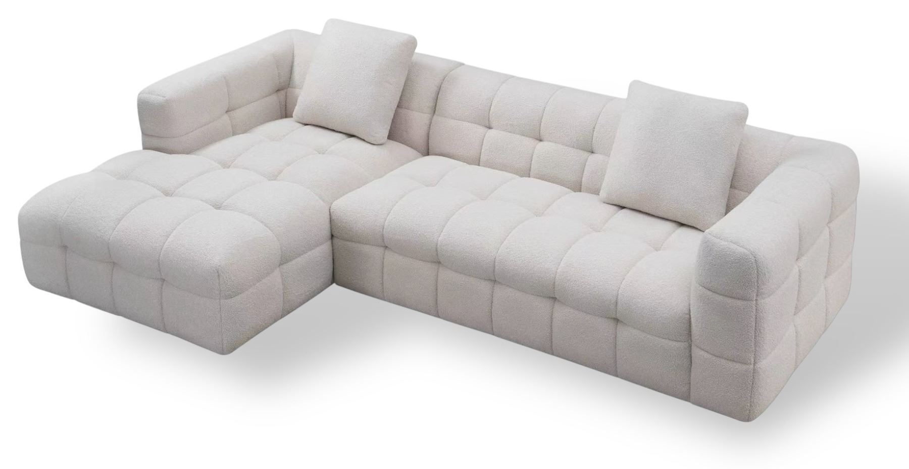 Brand new in box. newstyle modern Lshape sectional sofa with puffy soft fabric and funky design. Size around 114L x 40D x 28H; chaise approx 66; colours beige or grey; left or right chaise. Selected variant: Beige - Right Hand Facing.