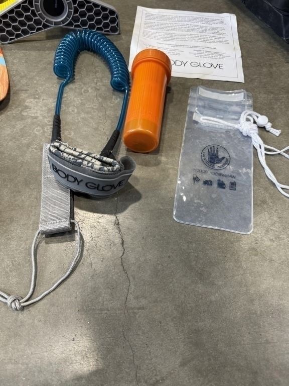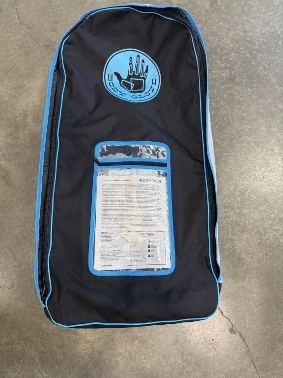 BODY GLOVE PADDLEBOARD BAG WITH ELECTRIC AND MANUAL PUMPS, PADDLE, LEASH, REPAIR KIT ETC