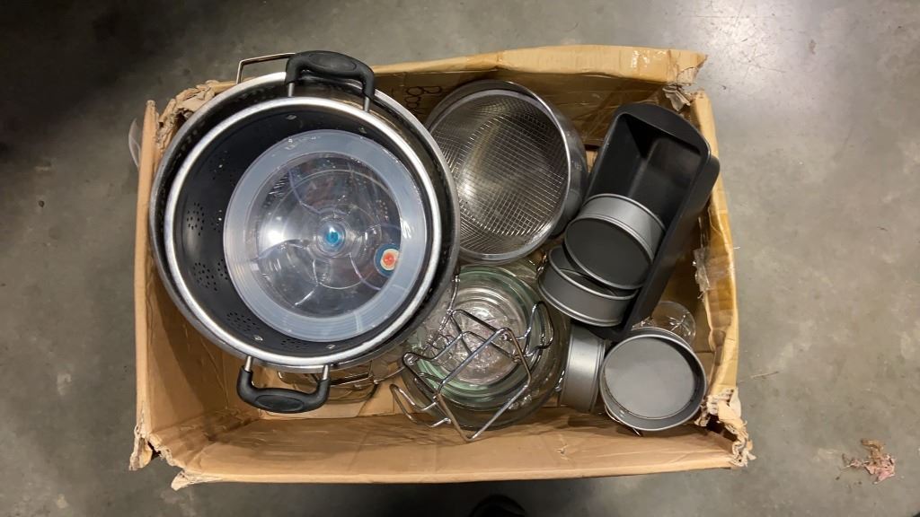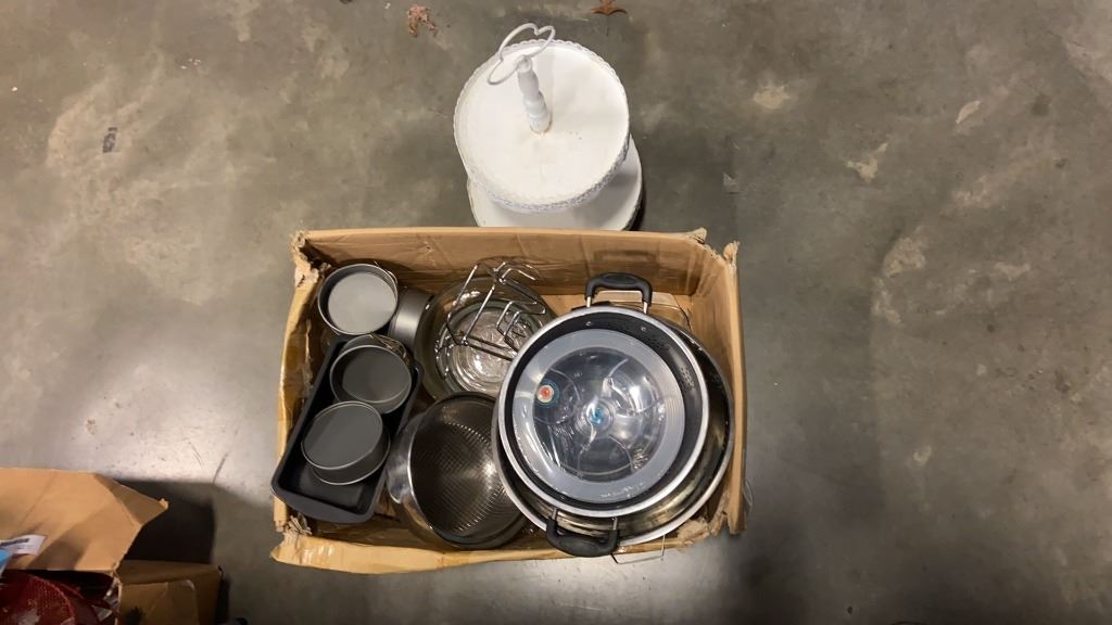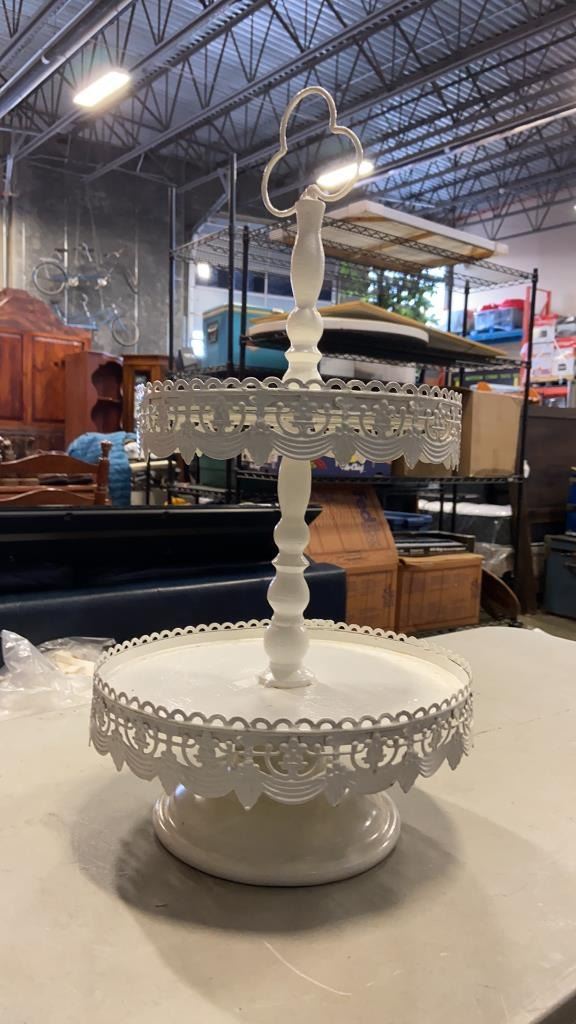 BOF OF KITCHEN ITEMS, AND WHITE 2 TIER CAKE TRAY