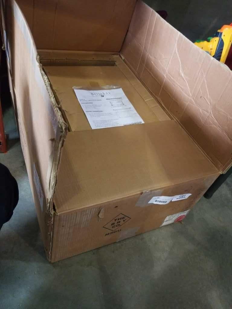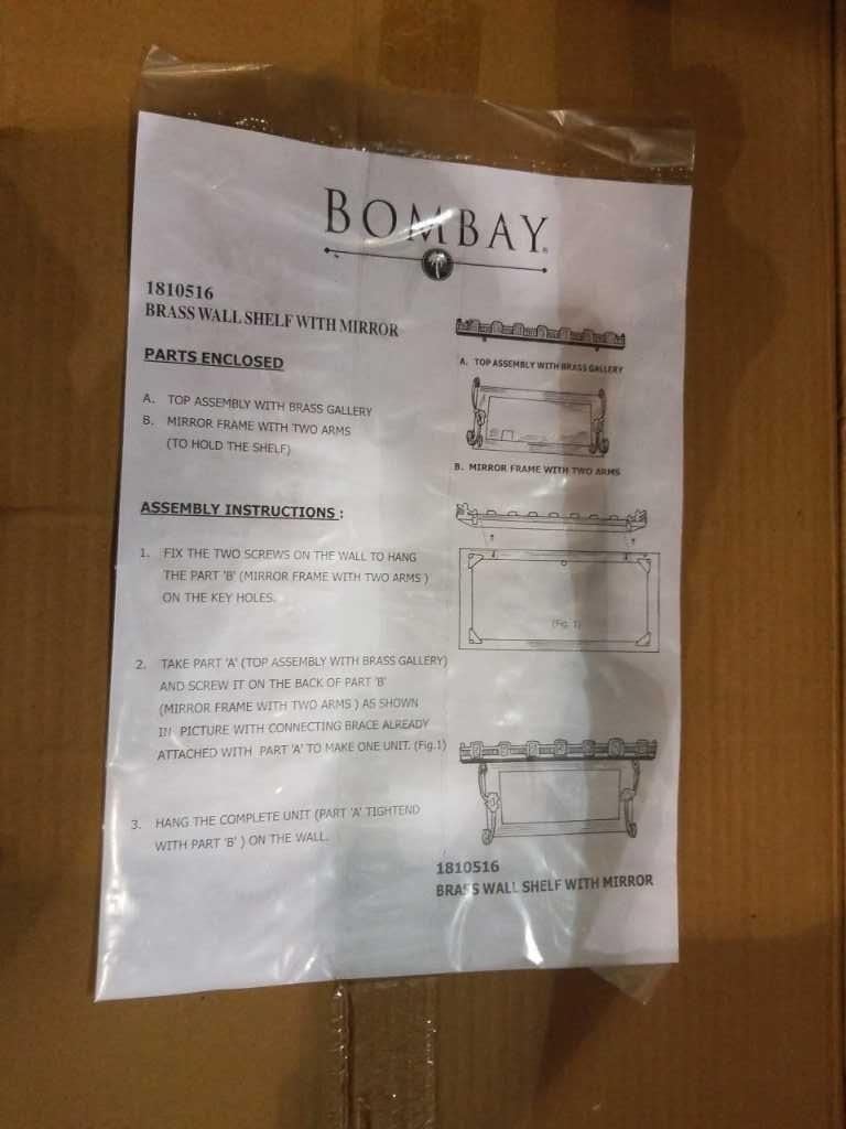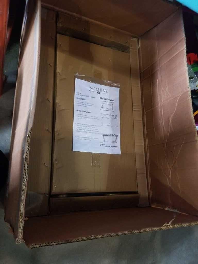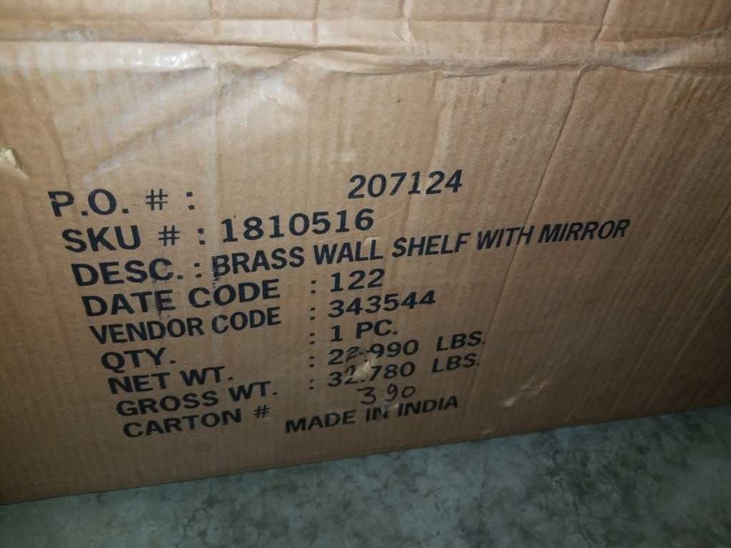 BOMBAY CO BRASS WALL SHELF WITH MIRROR IN BOX