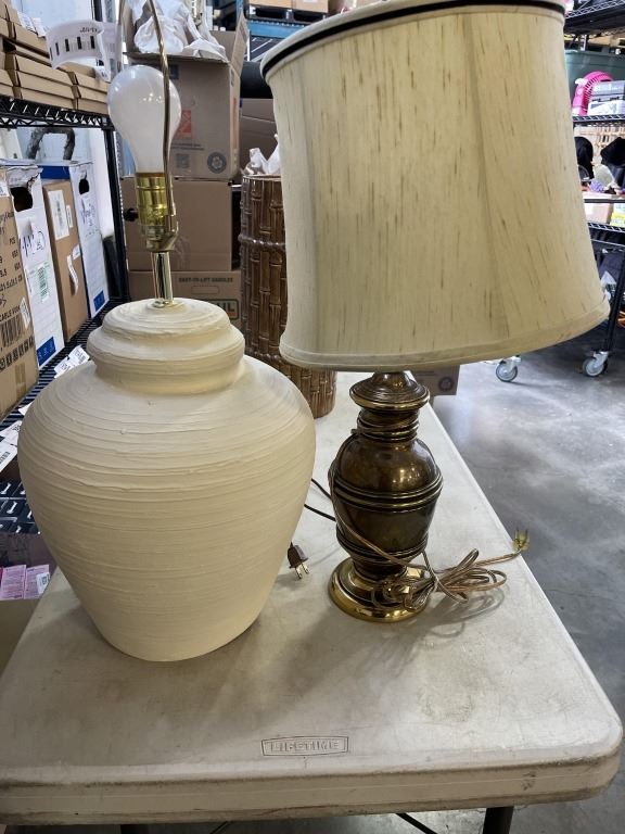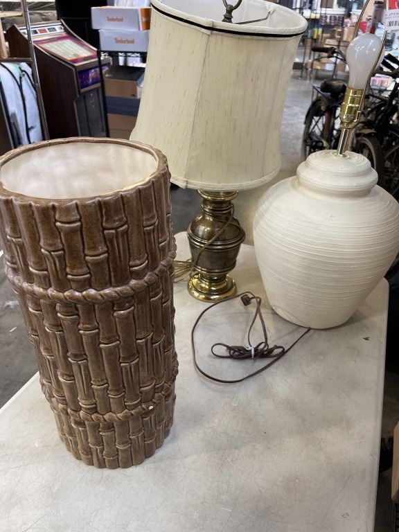 BOMBOO LOOK VASE AND 2 VINTAGE TABLE LAMPS