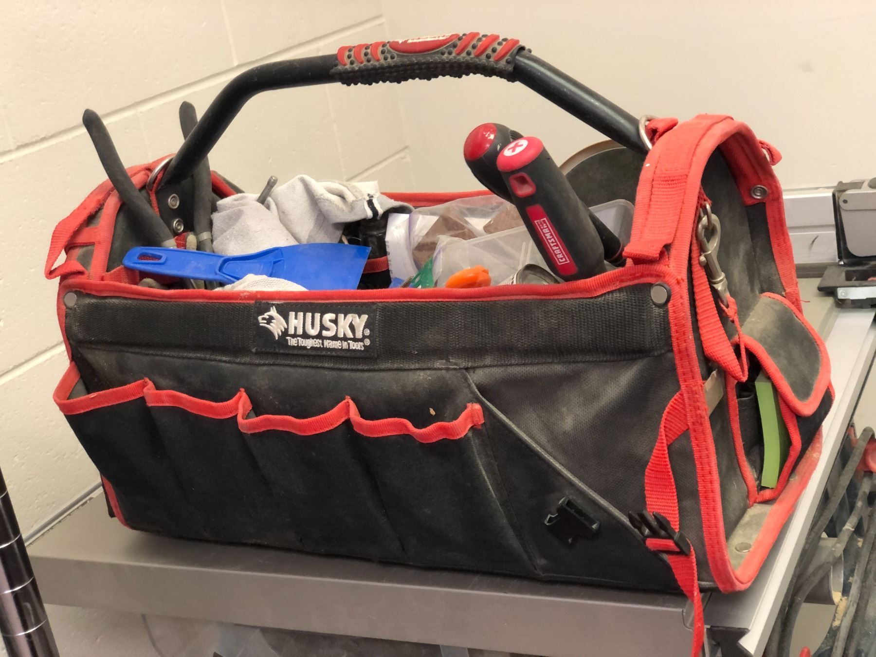 BOSCH 10 in. Worksite Table Saw with Gravity-Rise Wheeled Stand & Husky tool bag