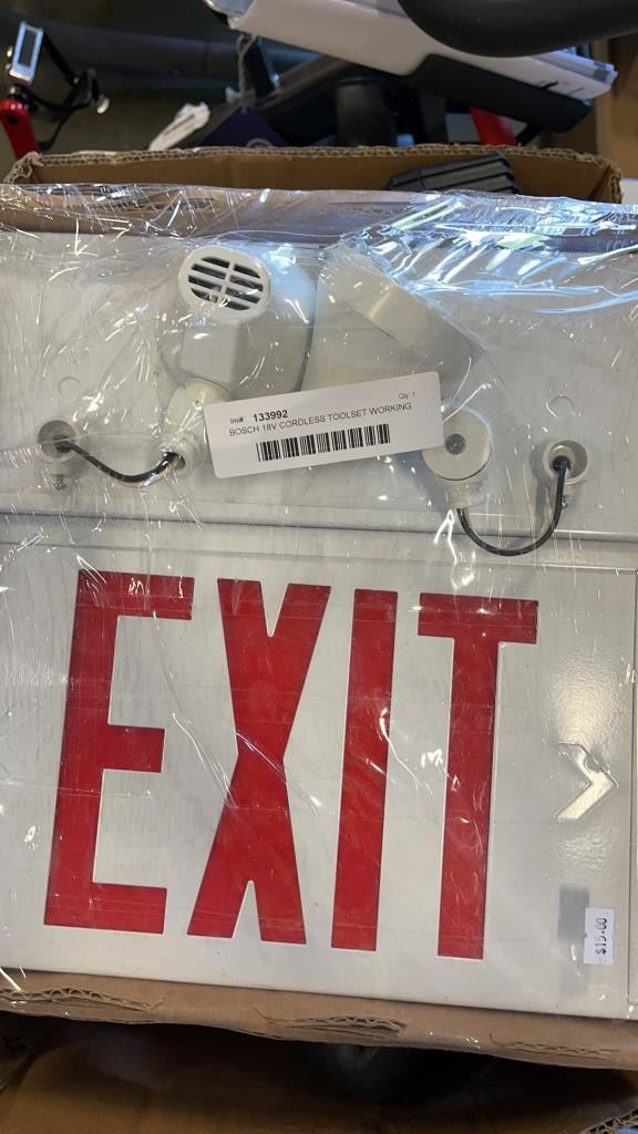 BOSCH 18V CORDLESS TOOLSET WORKING WITH BATTERY AND CHARGER INCLUDING EXIT SIGN