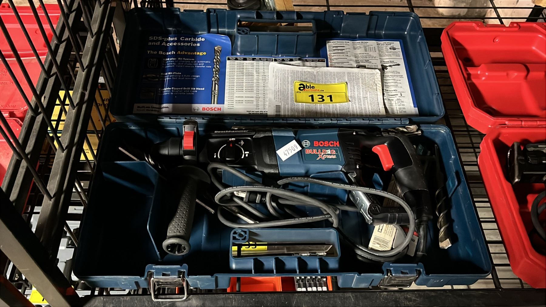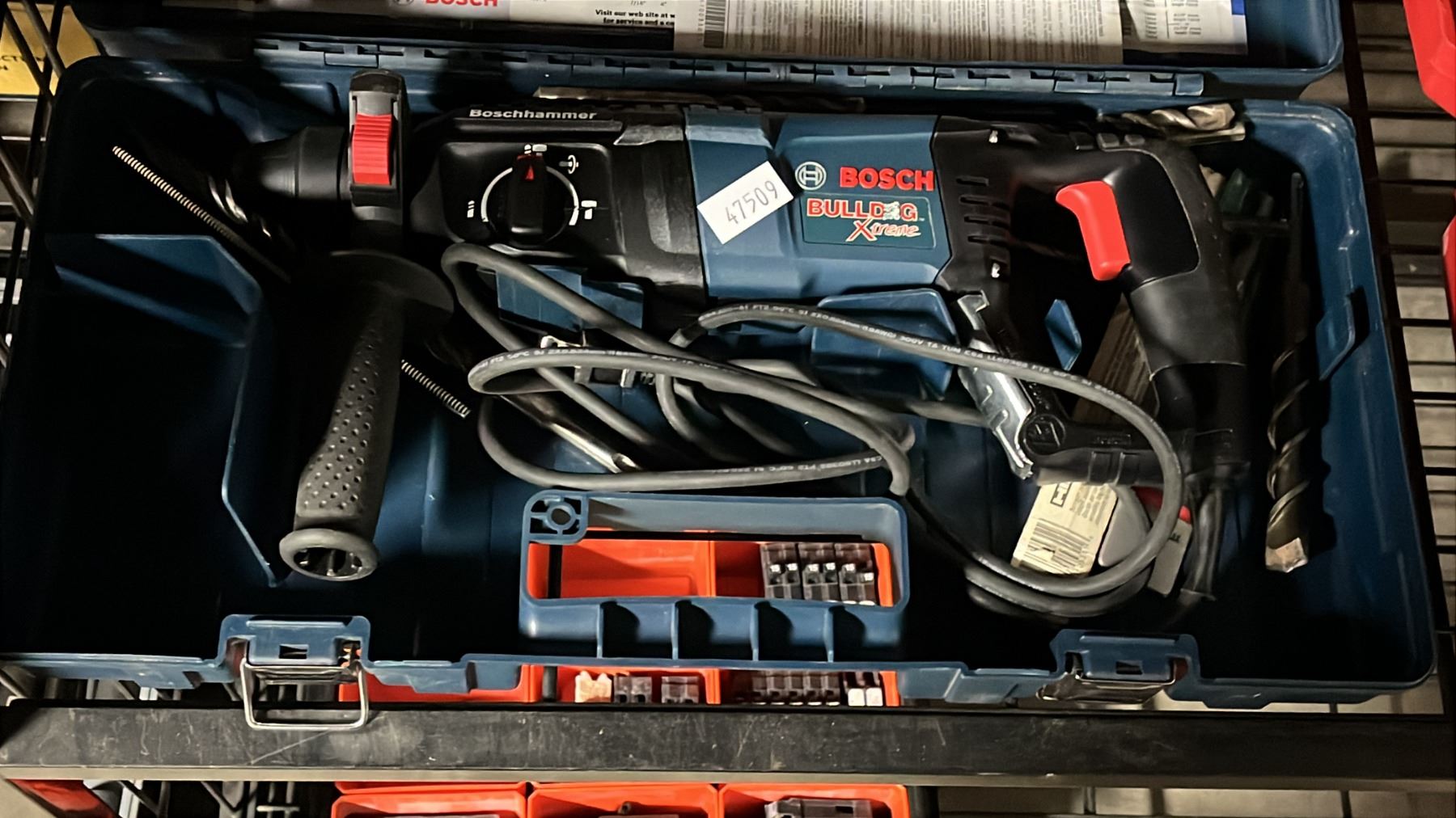 BOSCH BULLDOG XTREME VARIABLE SPEED ELECTRIC ROTARY HAMMER IN A HARD TRANSPORT CASE