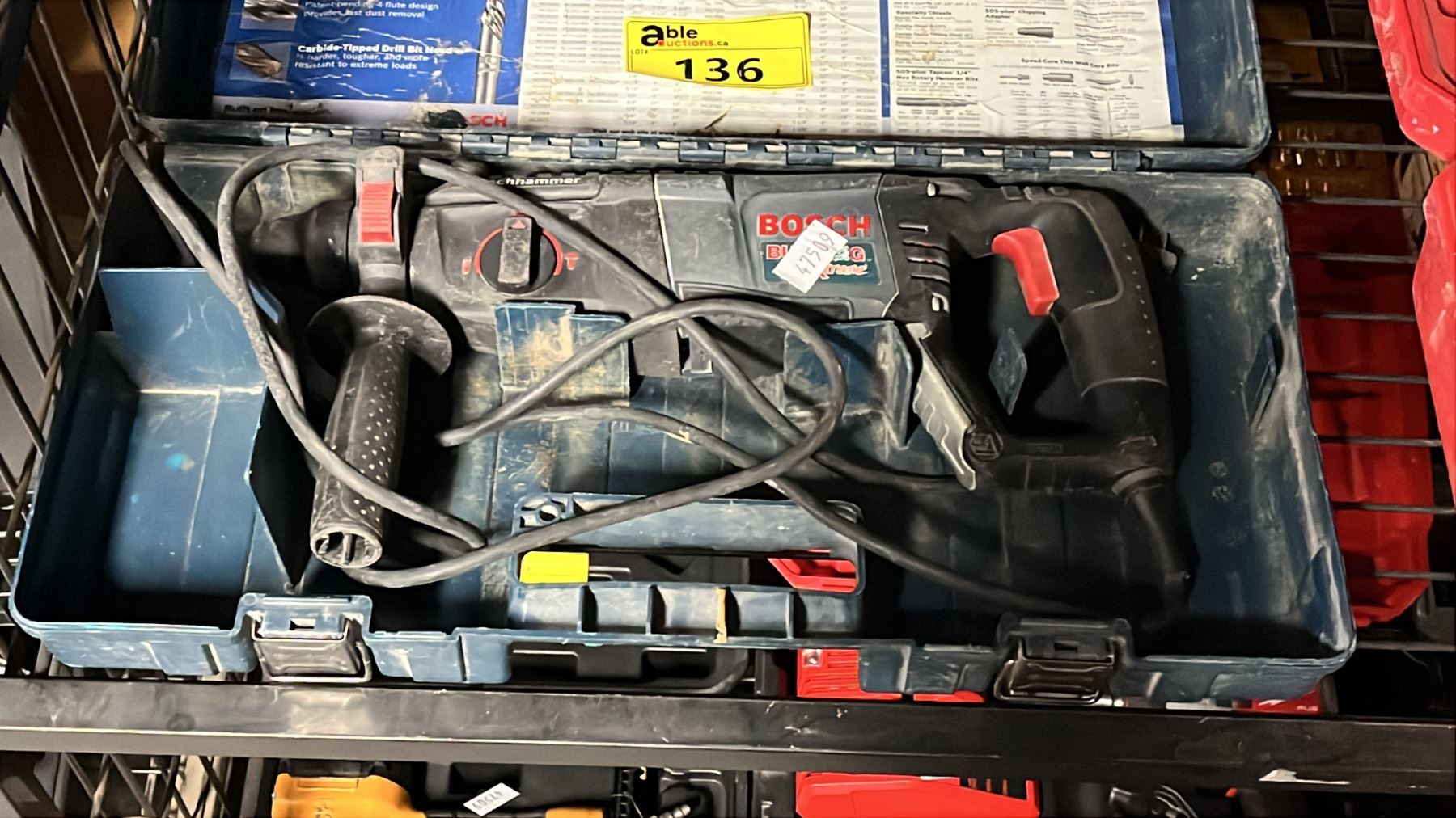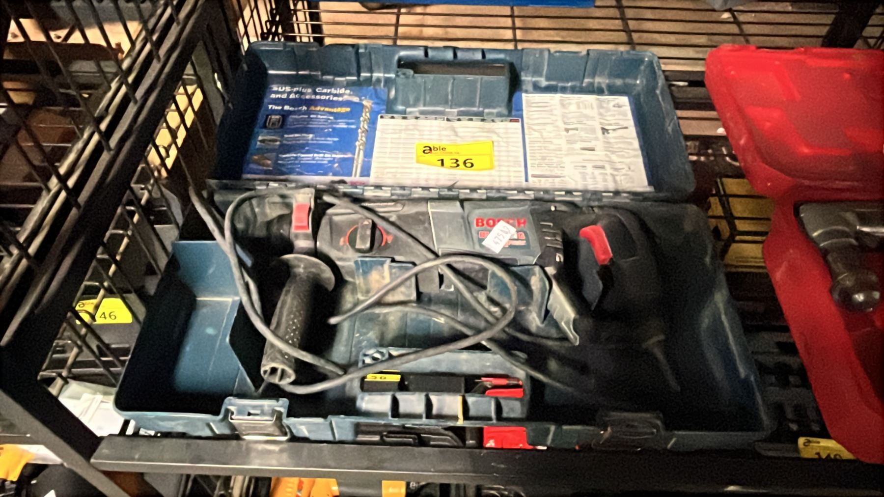 BOSCH BULLDOG XTREME VARIABLE SPEED ELECTRIC ROTARY HAMMER IN A HARD TRANSPORT CASE