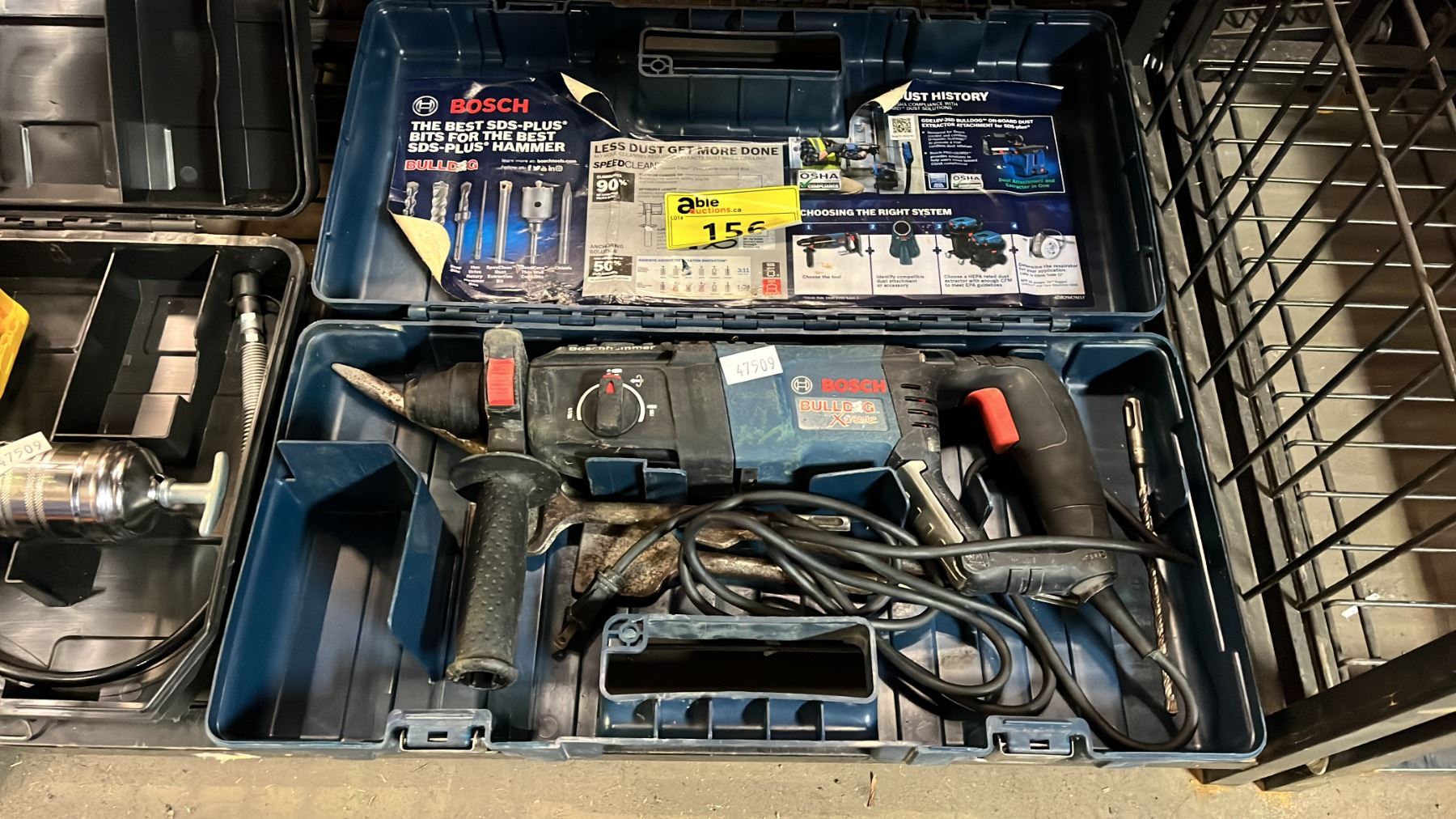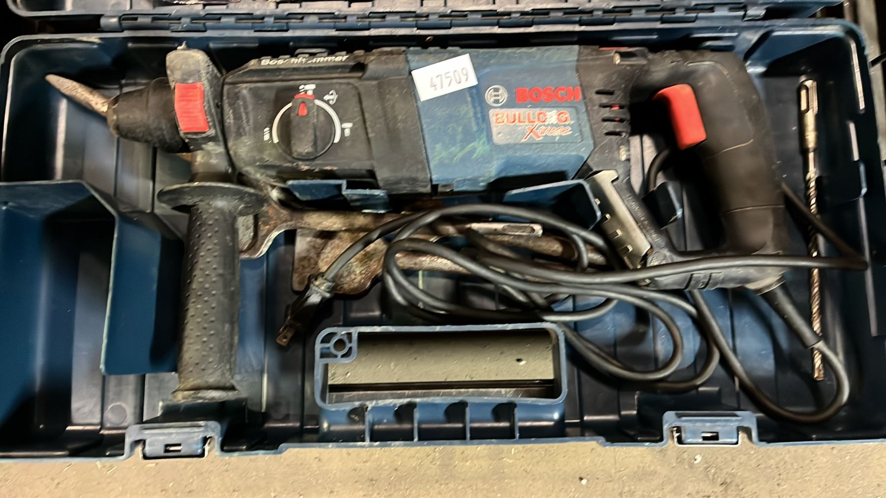 BOSCH BULLDOG XTREME VARIABLE SPEED ELECTRIC ROTARY HAMMER IN A HARD TRANSPORT CASE